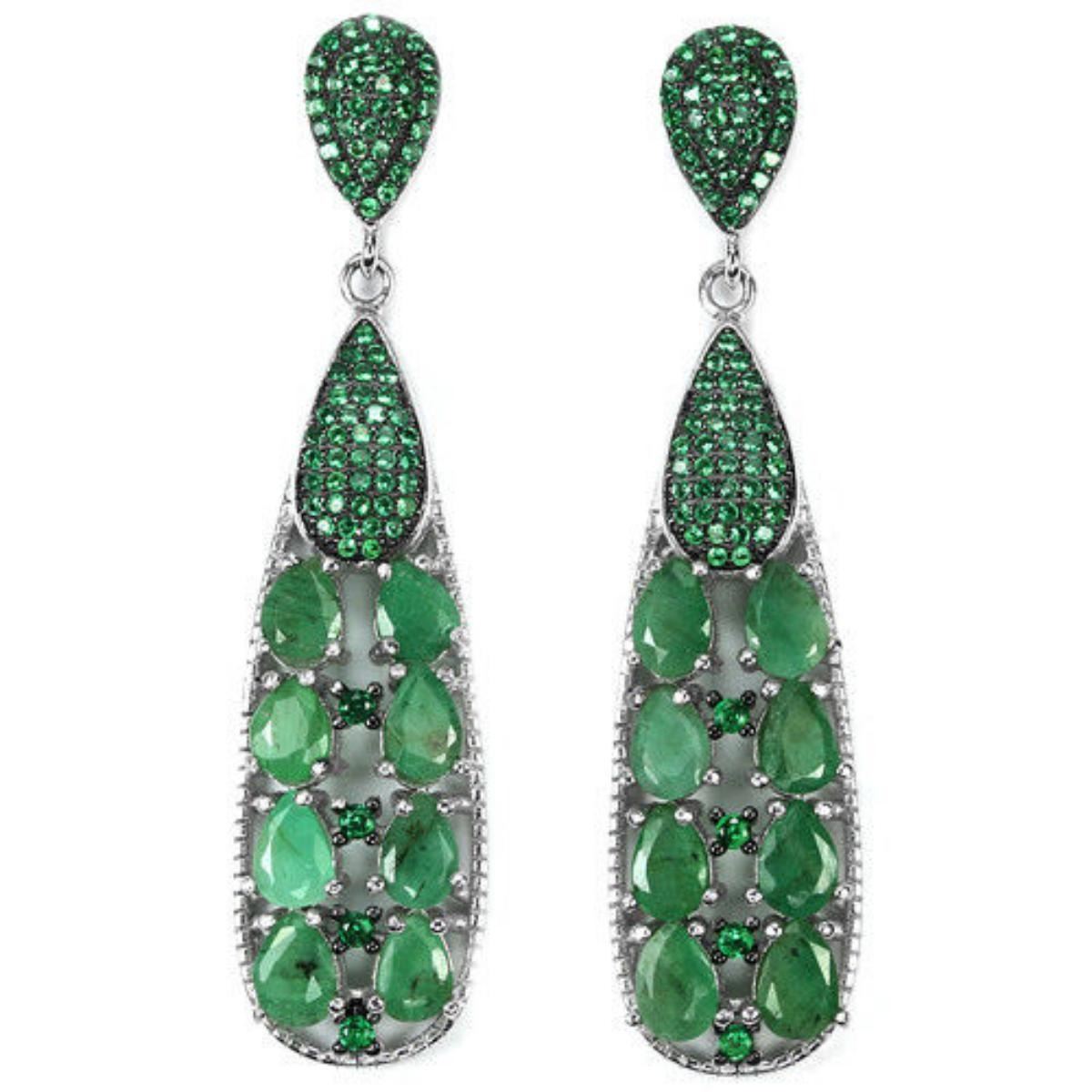 NATURAL GREEN EMERALD PEAR & CZ 925 SILVER EARRING 14K WHITE-BLACK GOLD COATING;STONE SHAPEPEARSTONE DIMENSION6 X 4 MM.ITEM WEIGHT10.6 GRAMCOLORGREENCLARITYTRANSLUCENTLUSTERALLURINGTREATMENTNATURAL UNHEATEDORIGIN OF STONEAFRICAHARDNESS7.5;FACE OF EARRING 53 X 13 MM. GREEN CUBIC ZIRCONIA 1.7 MM. , 1 MM.