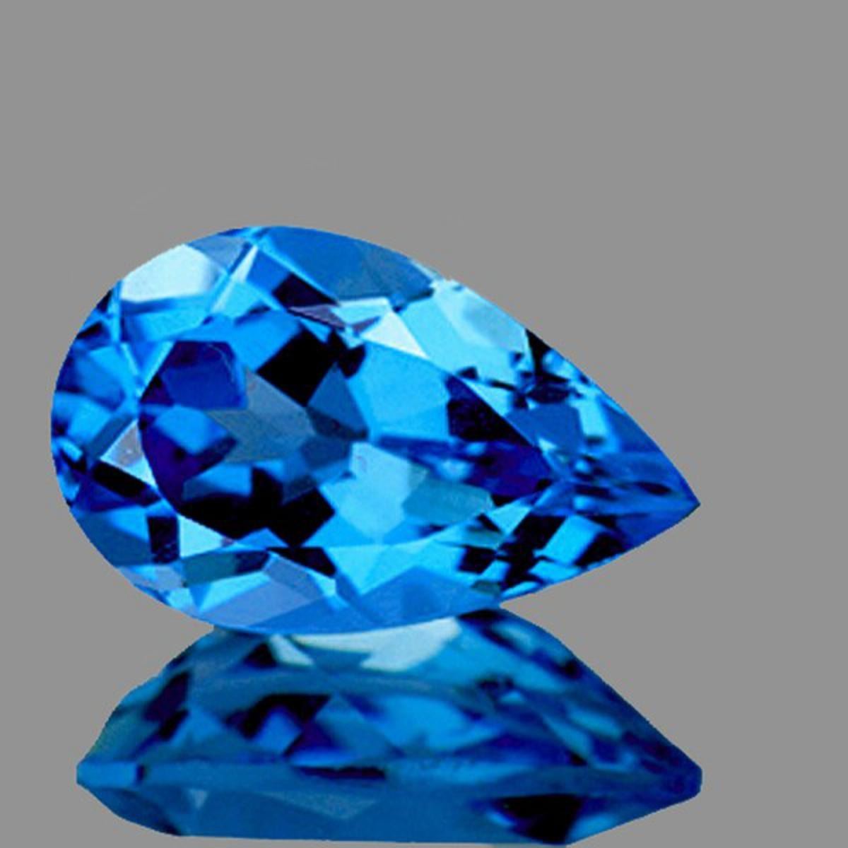 Natural Swiss Blue TopazSIZE ( L x W x D ) : 15.37 x 9.09 x 5.87 mmCOLOR : Swiss Blue Intense Color SHAPE : PearQUANTITY : 1 pieceLUSTER : Excellent CLARITY : FLAWLESS-VVS (BEST QUALITY)HARDNESS : 8ORIGIN : Brazil TREATMENT : Standard