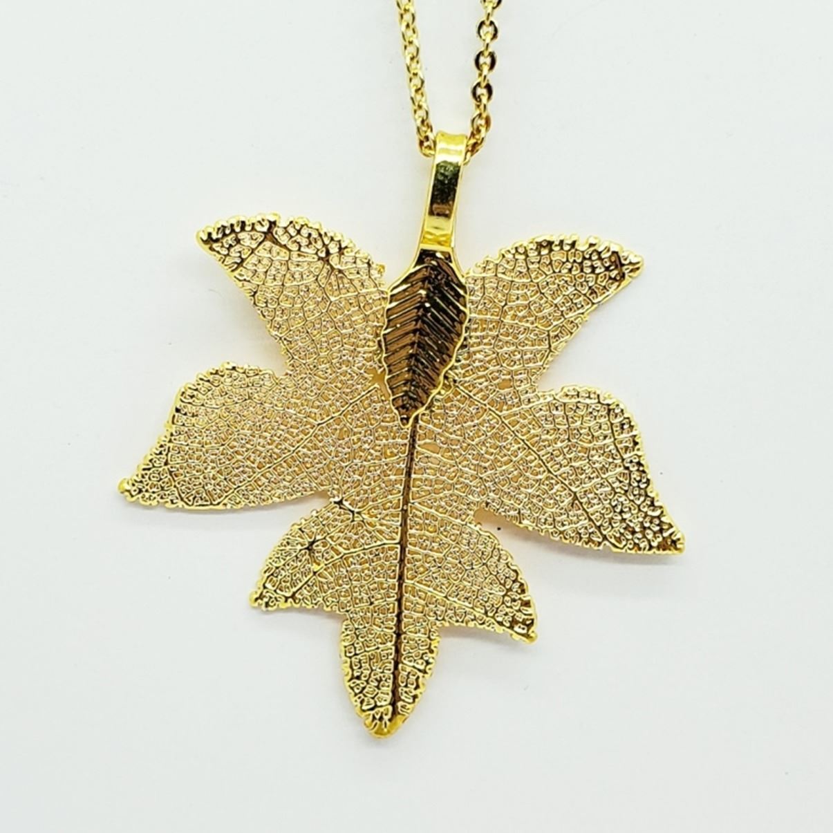 NATURAL LEAF PENDANT FASHION JEWELRY NECKLACE. SUGGESTED RETAIL VALUE $100 ESTIMATE $75 - $100.