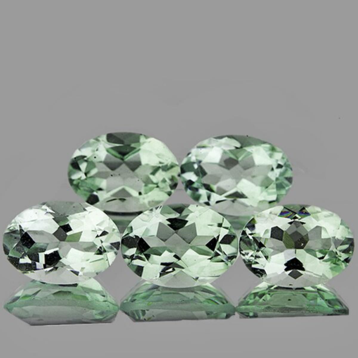 Natural Green Amethyst (Prasiolite)SIZE ( L x W x D ) : 8 x 6 mmCOLOR : Light Green Tea; SHAPE : OvalQUANTITY : 5 piecesLUSTER : Excellent CLARITY : FLAWLESS-VVS BEST QUALITYHARDNESS : 7ORIGIN : Brazil TREATMENT : 100% Natural Unheated