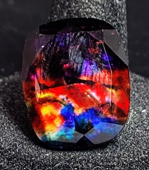 GEMSTONE, CUSHION CUT, MULTI COLORED, READY FOR SETTING AND INFORMATION CARD. JEWELLERY