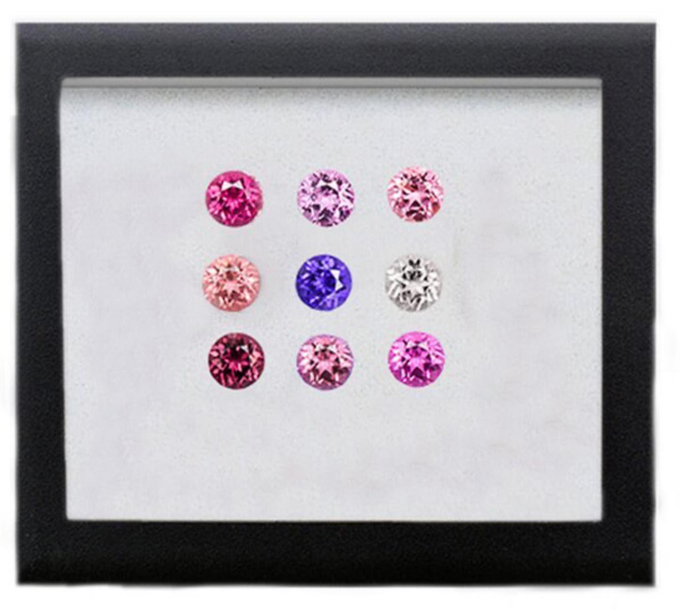 Natural SpinelSIZE ( L x W x D ) : 3.00 mmCOLOR : Multi Color (Pink, Red , Blue Orange,Yelow & White)SHAPE : Round (Machine Diamond Cut)QUANTITY : 9 piecesLUSTER : Extreme Brilliancy (Guarantee)CLARITY : FLAWLESS-VVS1 (BEST QUALITY)HARDNESS : 8.5ORIGIN : Mogok, Burma TREATMENT : 100% Natural Unheated