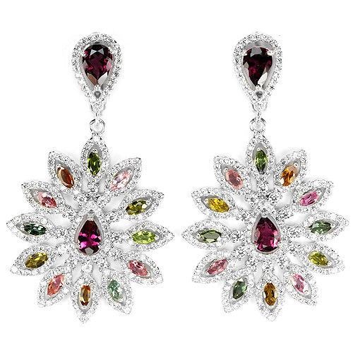 NATURAL MULTI COLOR TOURMALINE CZ 925 SILVER EARRING 14K WHITE GOLD COATING; STONE SHAPE PEAR MARQUISE STONE DIMENSION 6 X 4 MM. , 7 X 5 MM. , 4 X 2 MM. ITEM WEIGHT 12.9 GRAM COLOR MULTI COLOR CLARITY VS TO SI LUSTER DAZZLING TREATMENT NATURAL UNHEATED ORIGIN OF STONE AFRICA HARDNESS 7.5; FACE OF EARRING 46 X 27 MM. WHITE CUBIC ZIRCONIA 1.5 MM. , 1 MM.