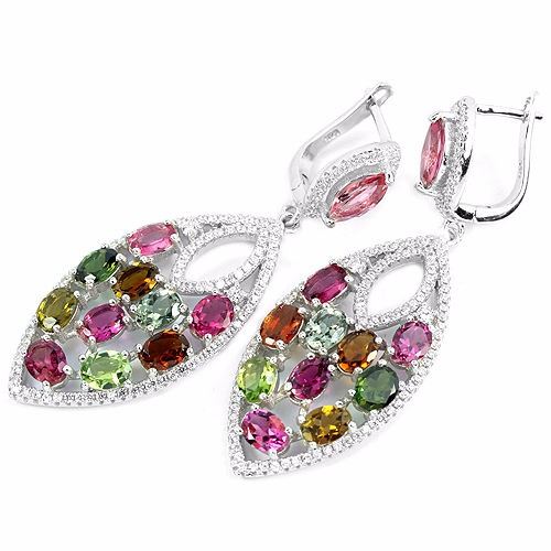 NATURAL MULTI COLOR TOURMALINE CZ 925 SILVER EARRING 14K WHITE GOLD COATING; STONE SHAPE- MARQUISE OVAL PORTUGUESE CUT; STONE DIMENSION -8 X 4 MM. 5 X 4 MM.; ITEM WEIGHT 12.44 GRAM COLOR -MULTI COLOR; CLARITY -IF, VVS - VS; LUSTER -DAZZLING; TREATMENT -UNHEATED; ORIGIN OF STONE -AFRICA; HARDNESS -7.5; - FACE OF EARRING 51 X 18 MM. ; WHITE CUBIC ZIRCONIA -1.7 MM. 1 MM.;