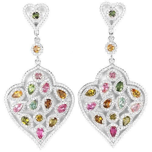 NATURAL MULTI COLOR TOURMALINE CZ 925 SILVER EARRING 14K WHITE GOLD COATING;STONE SHAPE PEAR ROUND PORTUGUESE CUT STONE DIMENSION 5 X 3 MM. 3 MM. ITEM WEIGHT 20 GRAM COLOR MULTI COLOR CLARITY VVS, VS - SI LUSTER DAZZLING TREATMENT UNHEATED ORIGIN OF STONE- AFRICA; HARDNESS -7.5; ; FACE OF EARRING 65 X 31 MM. WHITE CUBIC ZIRCONIA 1 MM.
