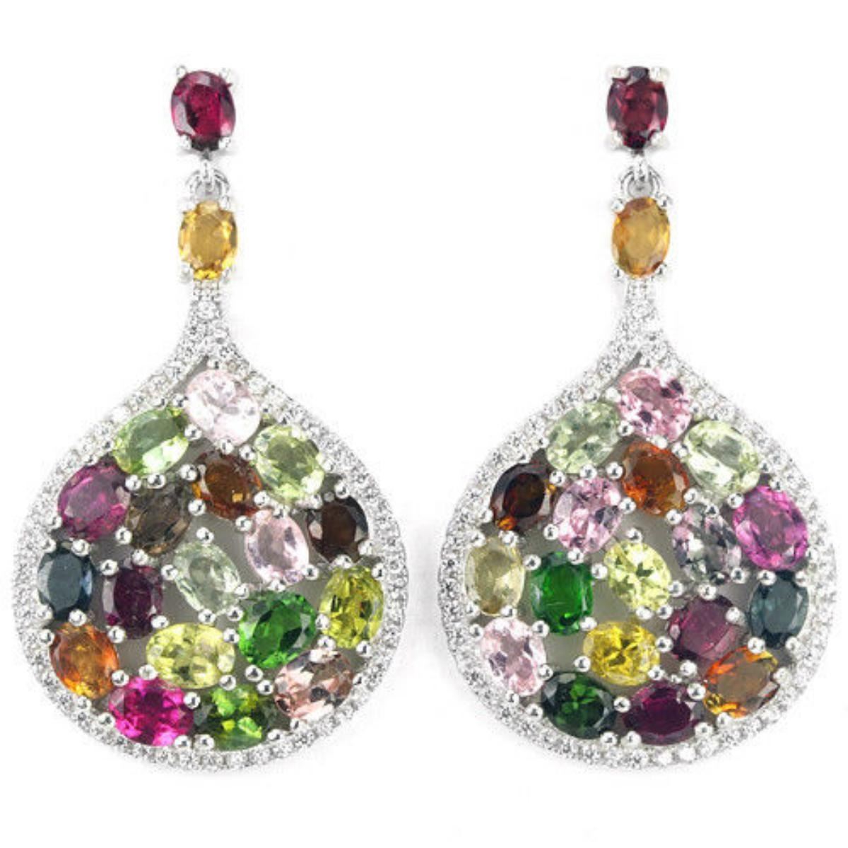 NATURAL MULTI COLOR TOURMALINE & CZ 925 SILVER EARRING 14K WHITE GOLD COATING; STONE SHAPEOVALSTONE DIMENSION4 X 3 MM.ITEM WEIGHT9.39 GRAMCOLORMULTI COLORCLARITYVVS, VS & SILUSTERALLURINGTREATMENTNATURAL UNHEATEDORIGIN OF STONEAFRICAHARDNESS7.5OTHERFACE OF EARRING 35 X 20 MM. WHITE CUBIC ZIRCONIA 1 MM.