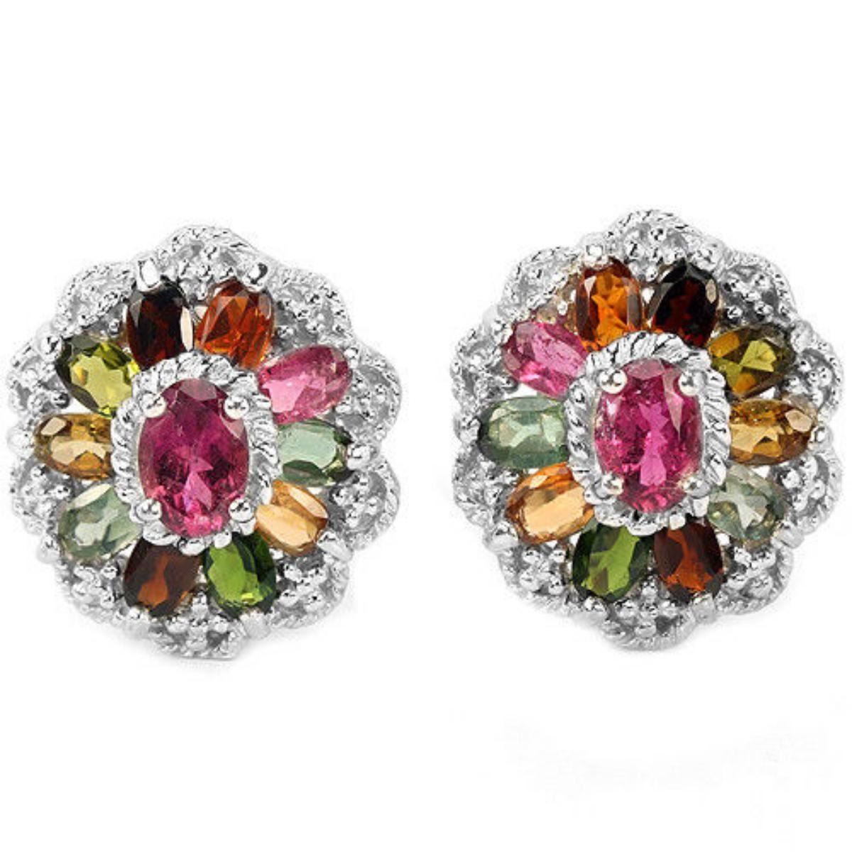 NATURAL AAA MULTI COLOR TOURMALINE OVAL 925 SILVER EARRING 14K WHITE GOLD COATING; STONE SHAPE OVAL PORTUGUESE CUT STONE DIMENSION 7 X 5 MM. , 5 X 3 MM. ITEM WEIGHT 9.7 GRAM COLOR MULTI COLOR CLARITY VVS, VS SI LUSTER DAZZLING TREATMENT NATURAL UNHEATED ORIGIN OF STONE AFRICA HARDNESS 7.5; FACE OF EARRING 20 X 18 MM.