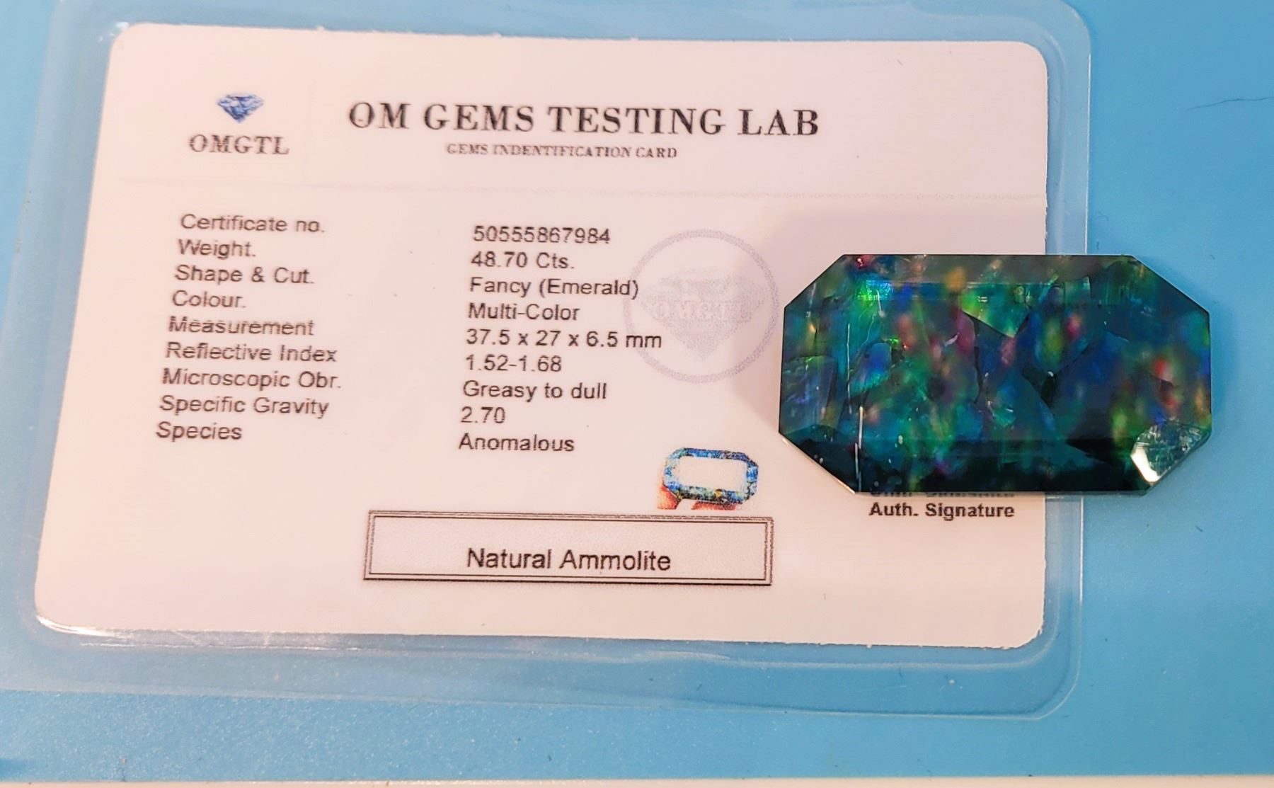 GEMSTONE SPECIMEN, 48.7 CT, INCLUDES INFORAMTION CARD, READY FOR SETTING. JEWELLERY