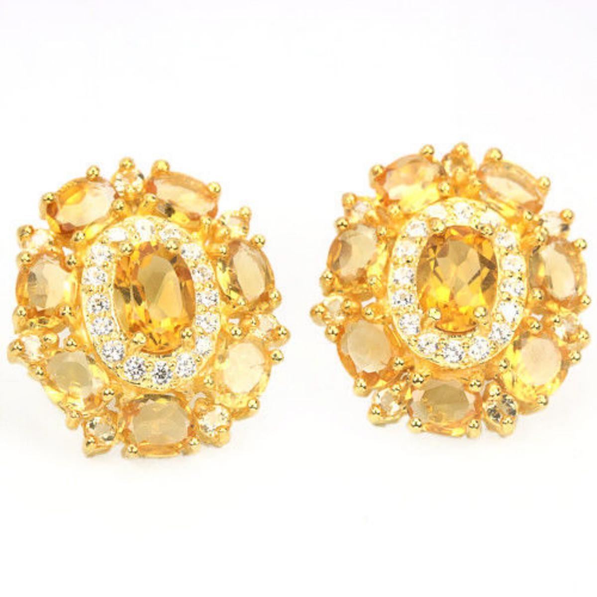 NATURAL ORANGISH YELLOW CITRINE CZ 925 SILVER EARRING 14K YELLOW GOLD COATING;STONE SHAPE OVAL ROUND STONE DIMENSION 7 X 5 MM. , 5 X 4 MM. 2 MM. ITEM WEIGHT 5.74 GRAM COLOR ORANGISH YELLOW CLARITY IF TO VVS LUSTER ELEGANT TREATMENT NATURAL UNHEATED ORIGIN OF STONE BRAZIL HARDNESS 7.0 FACE OF EARRING 20 X 18 MM. WHITE CUBIC ZIRCONIA 1.5 MM.