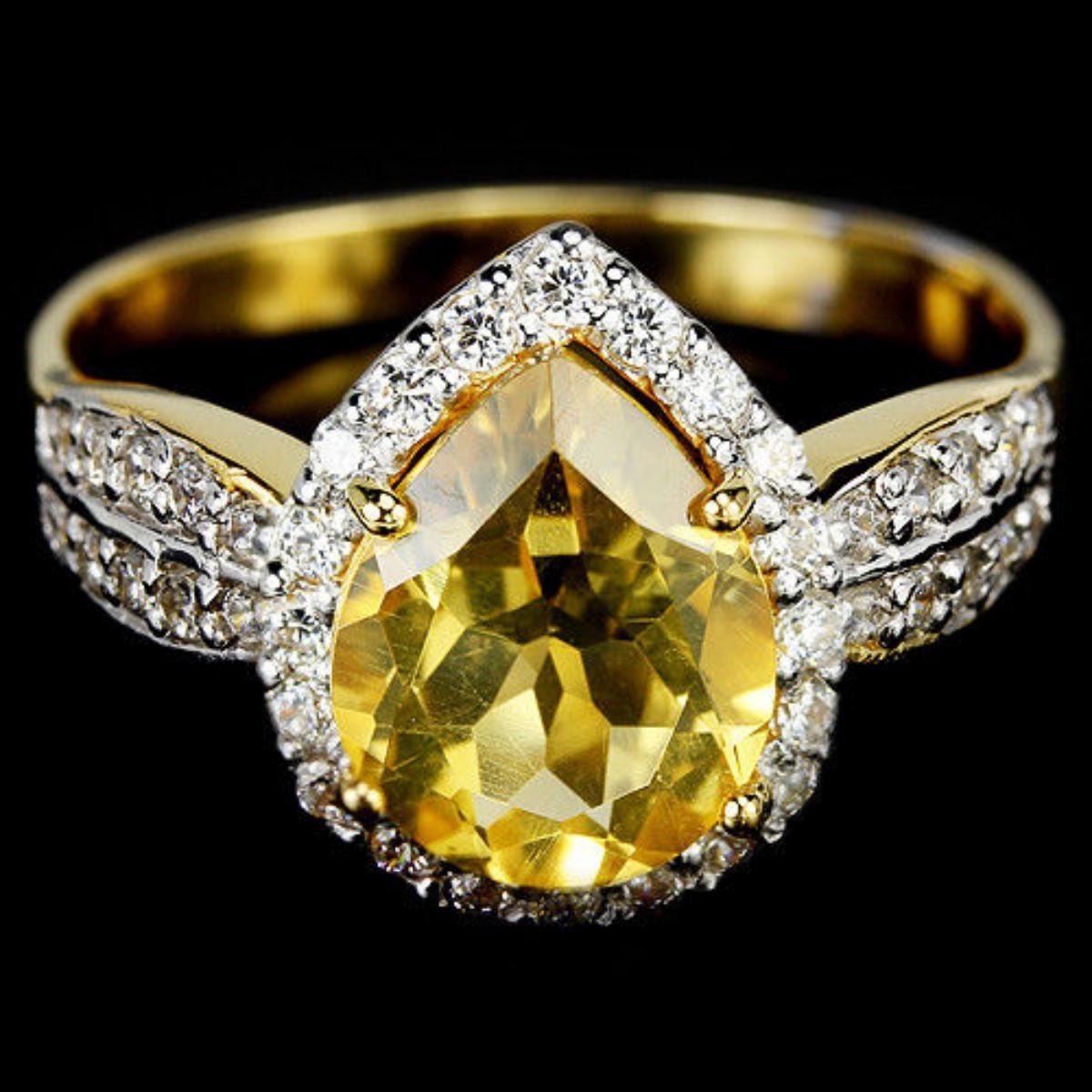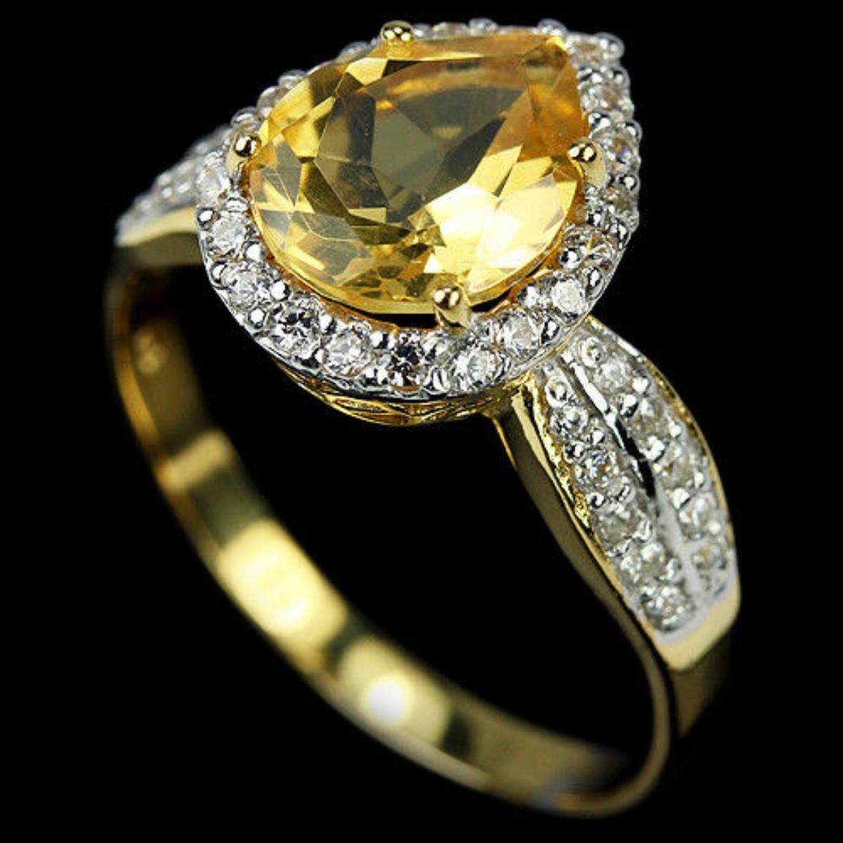 NATURAL AAA ORANGISH YELLOW CITRINE CZ 925 SILVER RING14K YELLOW GOLD COATING;RING SIZE, LENGTH OF ITEM (Inch.) 9.00 ( $10.00 for resize ) ITEM QUANTITY 1 STONE SHAPE PEAR PORTUGUESE CUT STONE DIMENSION 10 X 8 MM. ITEM WEIGHT 3.31 GRAM COLOR ORANGISH YELLOW CLARITY IF LUSTER ENCHANTING TREATMENT NATURAL UNHEATED ORIGIN OF STONE BRAZIL HARDNESS 7 ; FACE OF RING 20 X 13 MM. WHITE CUBIC ZIRCONIA 1.5 MM.