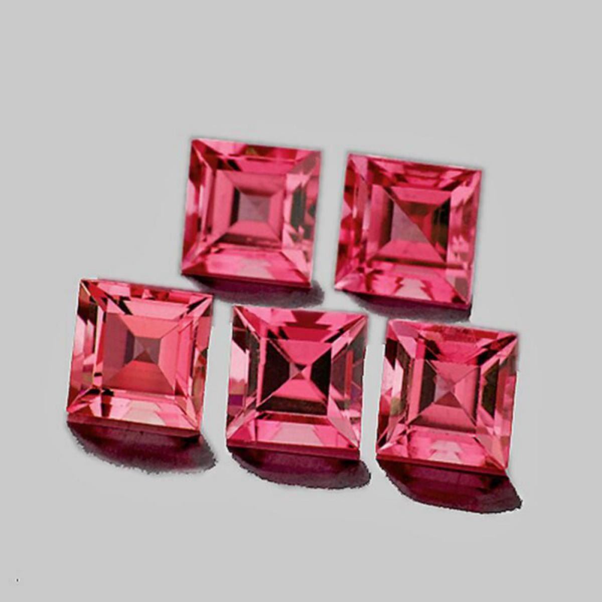 Natural TourmalineSIZE ( L x W x D ) : 4.00 mm COLOR : Padparadscha Pink (AAA Color)SHAPE : Square (Machine Cut)QUANTITY : 5 piecesLUSTER : Excellent (Top Quality, Satisfaction guaranteed)CLARITY : Flawless-VVSHARDNESS : 7ORIGIN : Mozambique TREATMENT : Unheated 100% Natural