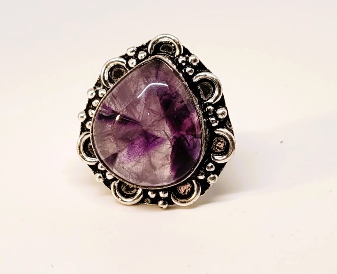 NATURAL PEAR SHAPED AMETHYST RING , STAMPED