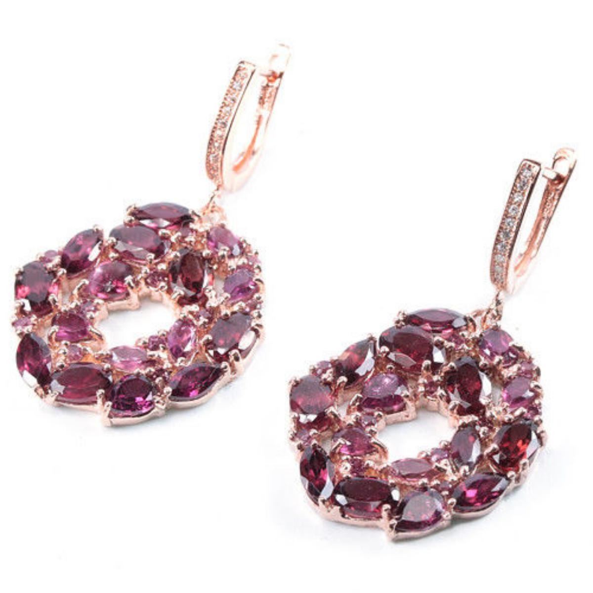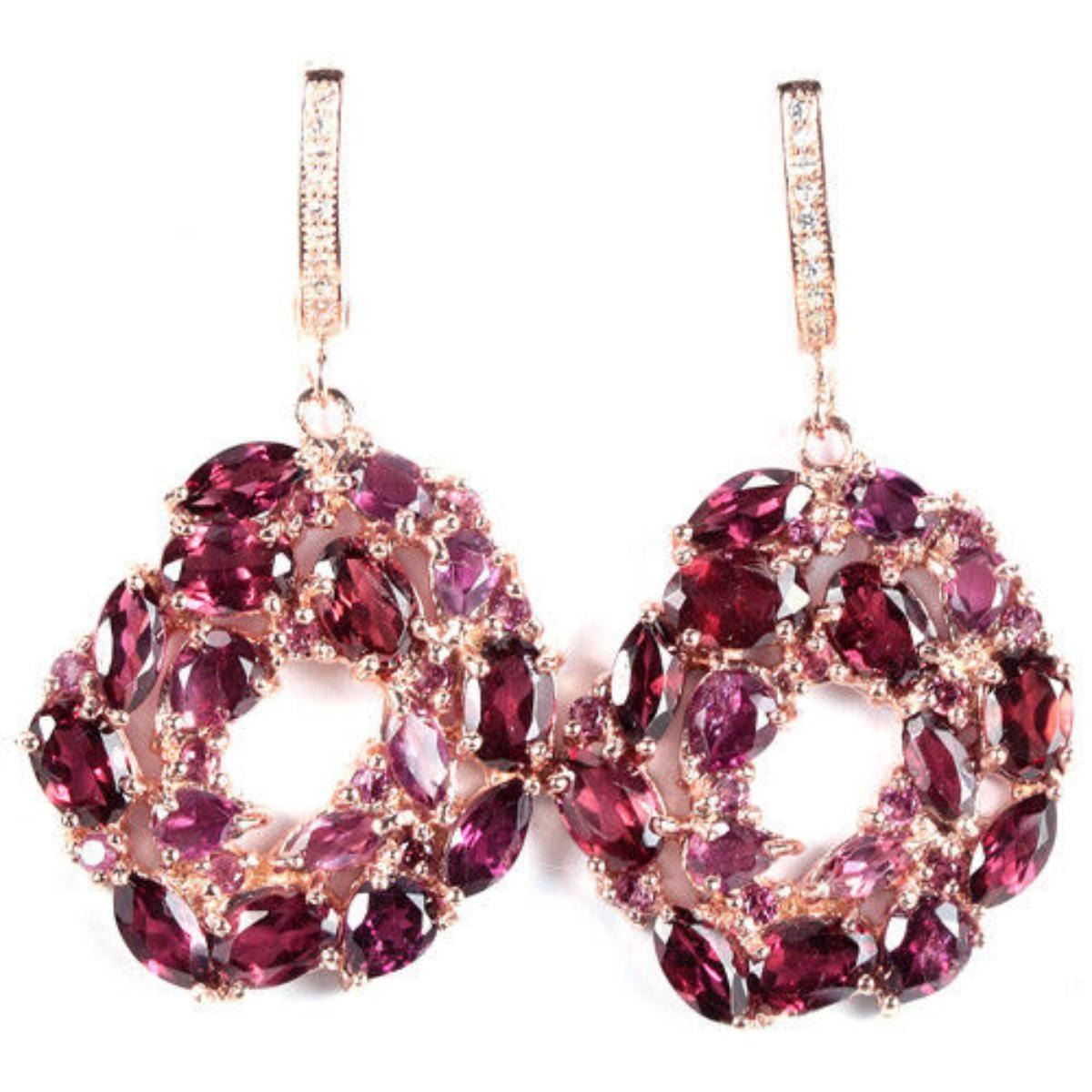 NATURAL AAA RHODOLITE GARNET & CZ 925 SILVER EARRING 14K PINK GOLD COATING; STONE SHAPEMIXED SHAPESTONE DIMENSION6 X 4 MM. , 6 X 3 MM. , 5 X 4 MM. , 5 X 2.5 MM. , 4 X 3 MM. & 1.7 MM.ITEM WEIGHT11.7 GRAMCOLORPINK RASPBERRYCLARITYIF, VVS - VSLUSTERRAVISHINGTREATMENTUNHEATEDORIGIN OF STONEAFRICAHARDNESS7.5;FACE OF EARRING 41 X 23 MM. WHITE CUBIC ZIRCONIA 1.2 MM.