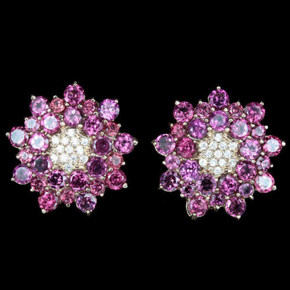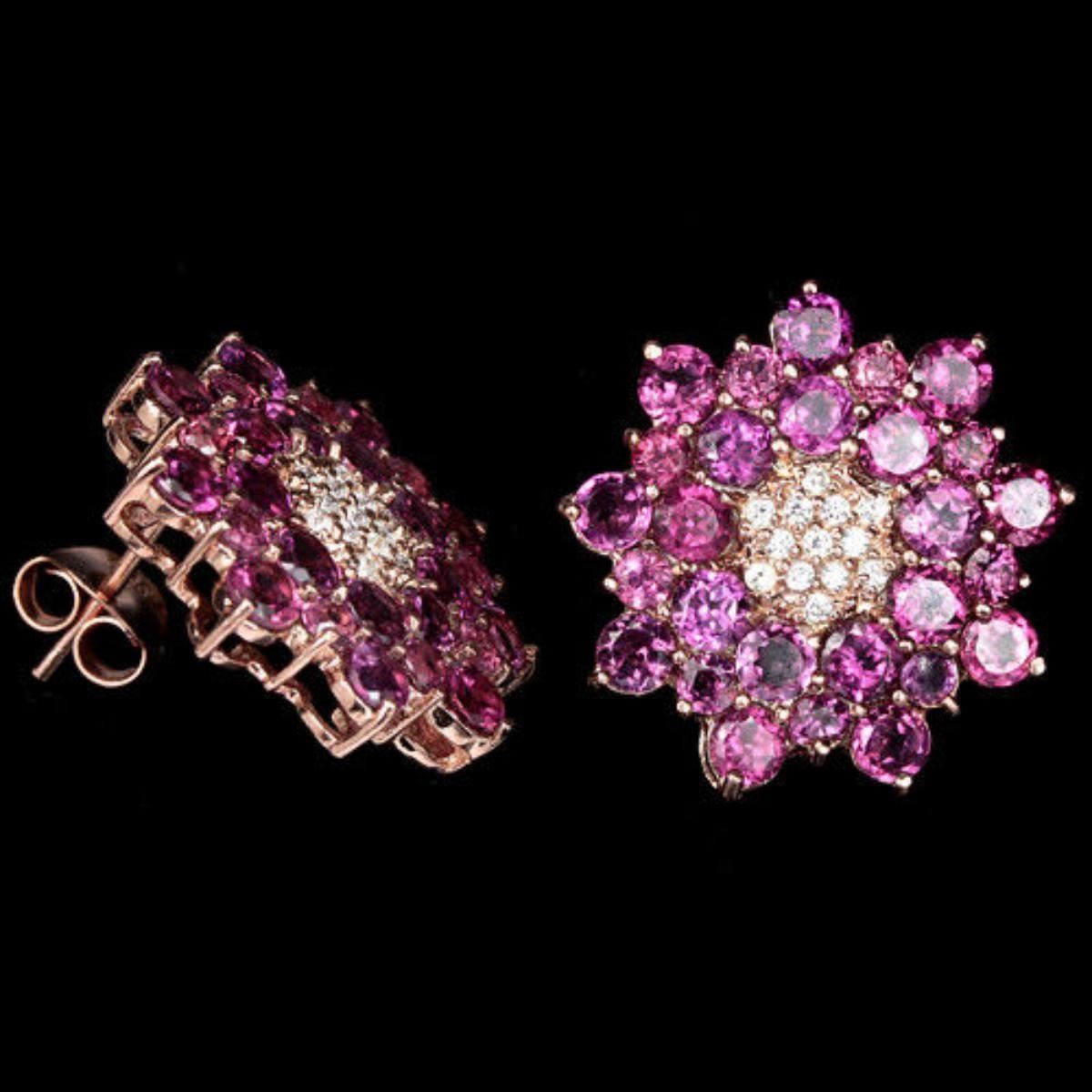 NATURAL AAA RHODOLITE GARNET & WHITE CZ 925 SILVER EARRING 14K PINK GOLD COATING; STONE SHAPEROUND PORTUGUESE CUTSTONE DIMENSION3.2 MM. & 2.5 MM.ITEM WEIGHT7.3 GRAMCOLORPINK RASPBERRYCLARITYIF - VVSLUSTERRAVISHINGTREATMENTUNHEATEDORIGIN OF STONEAFRICAHARDNESS7.5FACE OF EARRING 21 X 21 MM. WHITE CUBIC ZIRCONIA 1.2 MM.