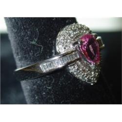 NATURAL PINK SAPPHIRE & DIAMOND RING. 18 KT. Gold. Sapphire: .75 ct. Diamond: .25 ct.