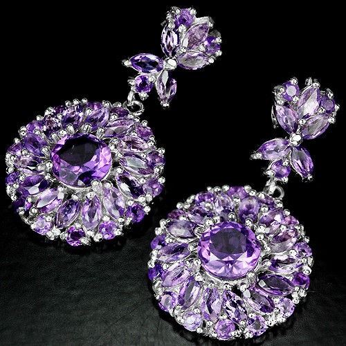 ENCHANTING NATURAL AAA PURPLE AMETHYST 925 SILVER EARRING 14K WHITE GOLD COATING; STONE SHAPE ROUND MARQUISE PORTUGUESE CUT STONE DIMENSION 8 MM. , 5 X 2.5 MM. 2.5 MM. ITEM WEIGHT 14.9 GRAM COLOR PURPLE CLARITY IF - VVS LUSTER ENCHANTING TREATMENT UNHEATED ORIGIN OF STONE BRAZIL HARDNESS 7.0 ;FACE OF EARRING 39 X 21 MM.
