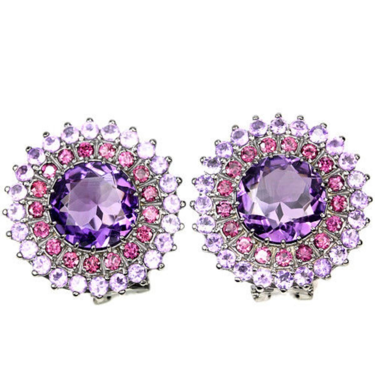 Natural 11 MM AMETHYST & RHODOLITE GARNET 925 SILVER EARRING 14K WHITE GOLD COATING; STONE SHAPEROUND PORTUGUESE CUTSTONE DIMENSION11 MM. , 2.5 MM. & 2.2 MM.ITEM WEIGHT12.6 GRAMCOLORPURPLE & PURPLISH PINKCLARITYIF - VVSLUSTERALLURINGTREATMENTUNHEATEDORIGIN OF STONEBRAZIL & AFRICAHARDNESS7.0 - 7.5OTHERFACE OF EARRING 25 X 25 MM.