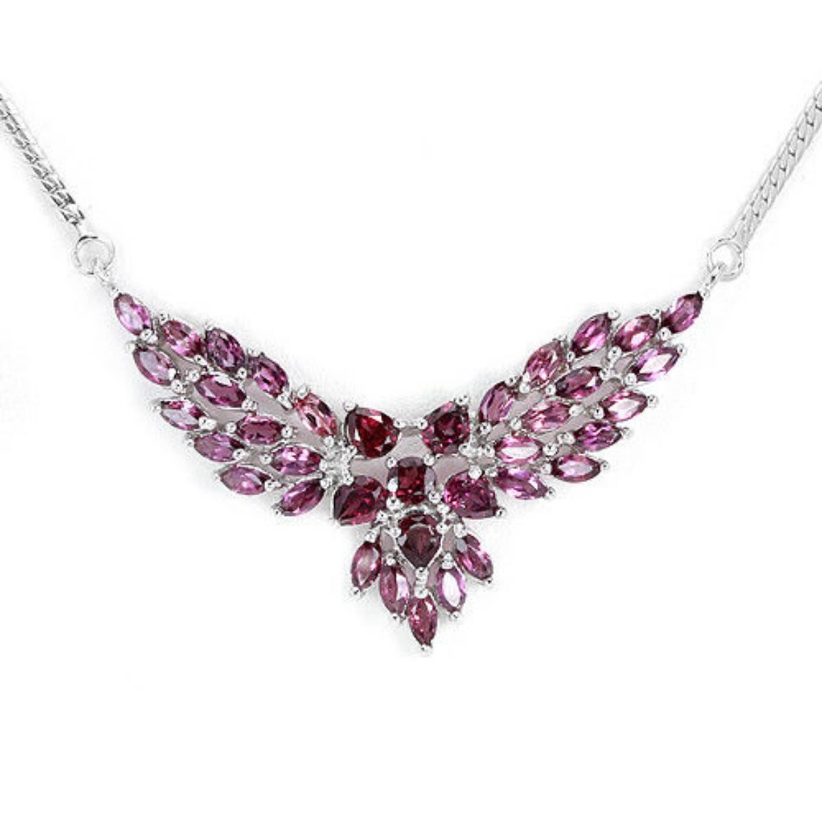 NATURAL PURPLE PINK RHODOLITE GARNET 925 SILVER NECKLACE 14K WHITE GOLD COATING.....17.75 inch; TONE SHAPE MIXED SHAPE STONE DIMENSION 5 X 4 MM. , 5 X 2.5 MM. , 4 MM. ITEM WEIGHT 13.4 GRAM COLOR PURPLE PINK CLARITY IF TO VVS LUSTER ENCHANTING TREATMENT NATURAL UNHEATED ORIGIN OF STONE AFRICA HARDNESS 7.5