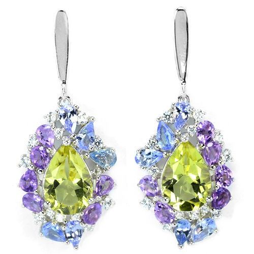 NATURAL QUARTZ TANZANITE AMETHYST CZ 925 SILVER EARRING 14K WHITE GOLD COATING;STONE SHAPE PEAR STONE DIMENSION 12 X 8 MM. , 5 X 3 MM. , 4 X 3 MM. ITEM WEIGHT 8.6 GRAM COLOR MULTI COLOR CLARITY VVS TO VS LUSTER VIVACIOUS TREATMENT NATURAL UNHEATED ORIGIN OF STONE BRAZIL TANZANIA HARDNESS 7 - 7.5 ; FACE OF EARRING 41 X 16 MM. WHITE CUBIC ZIRCONIA 1.7 MM. , 1.5 MM.