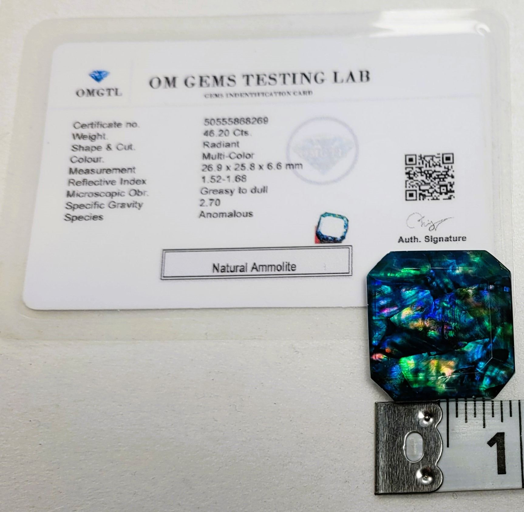 GEMSTONE IN SHADES OF BLUE, GREEN AND PURPLE, 46.20 CT, READY FOR SETTING, COMES WITH INFORMATION SHEET. JEWELLERY
