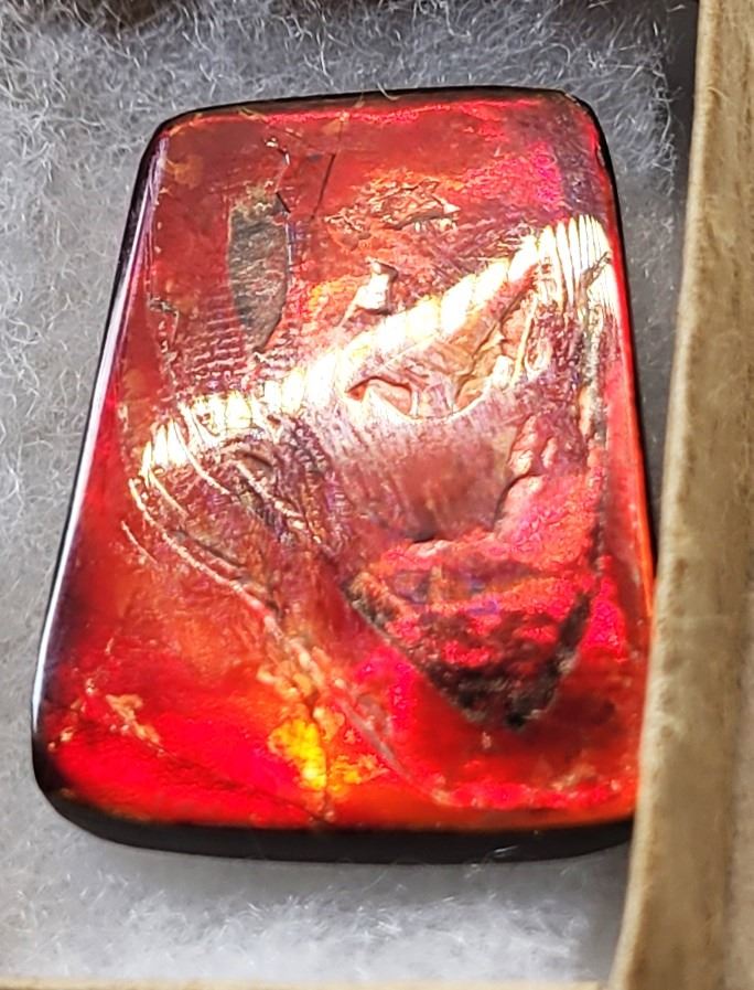 NATURAL RED FIRE 45 CT AMMOLITE SPECIMEN,