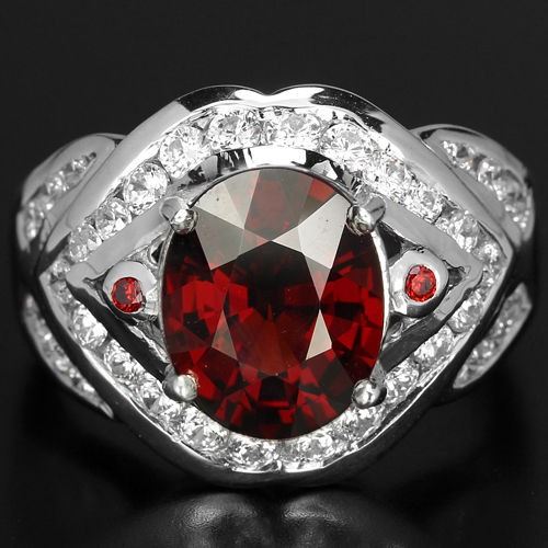 NATURAL DARK RED SPESSARTITE GARNET CZ 925 SILVER RING 14K WHITE GOLD COATING; RING SIZE -7.00 ( can be resized )STONE SHAPE-OVAL PORTUGUESE CUT;STONE DIMENSION-10.2 X 8.2 X 5 MM.;ITEM WEIGHT-6.1 GRAM;COLOR-DARK RED;CLARITY-IF;LUSTER-ENCHANTING;TREATMENT-NATURAL UNHEATED;ORIGIN OF STONE-AFRICA;HARDNESS-7.5;FACE OF RING 20 X 15 MM. ;WHITE RED CUBIC ZIRCONIA
