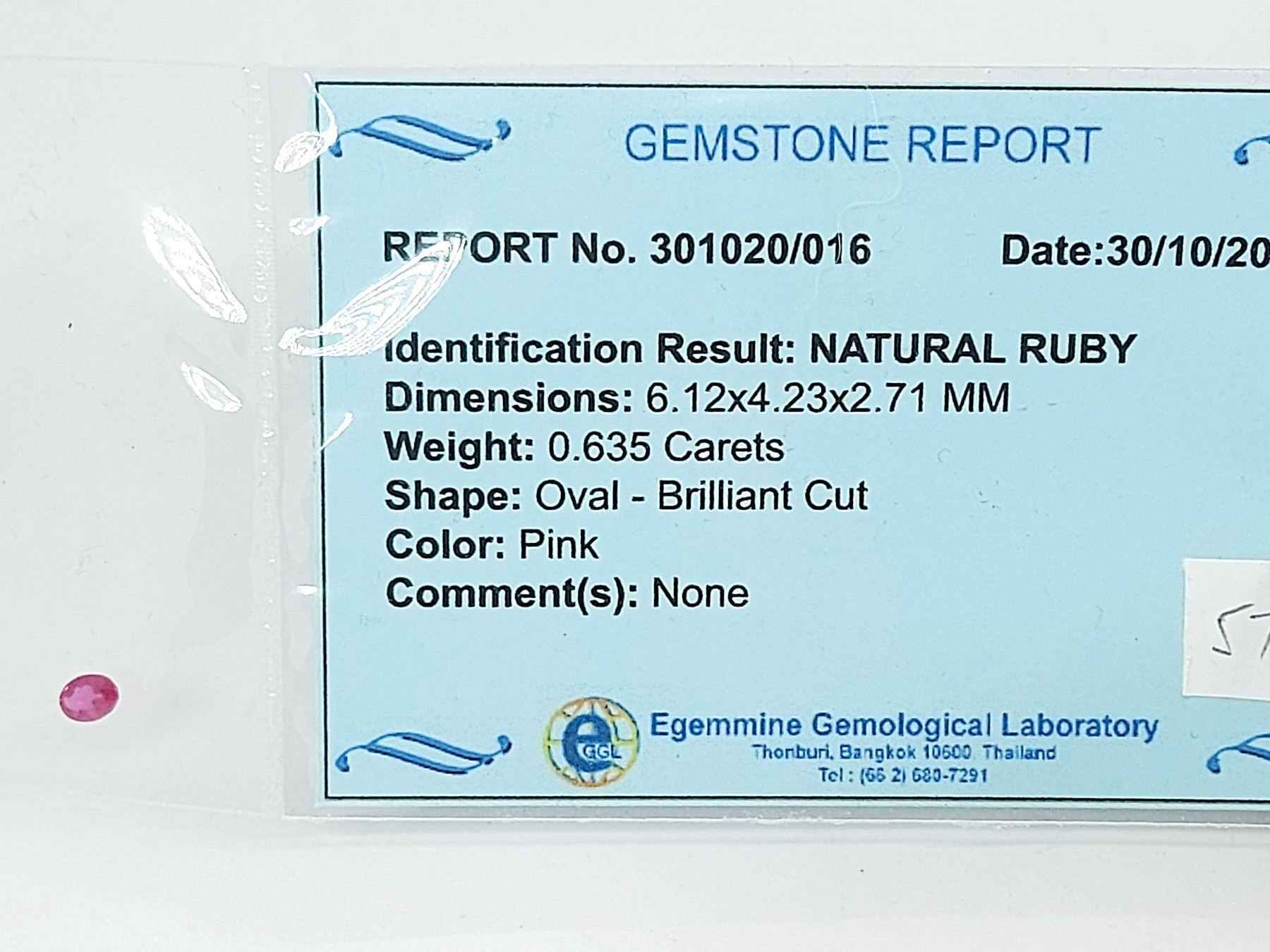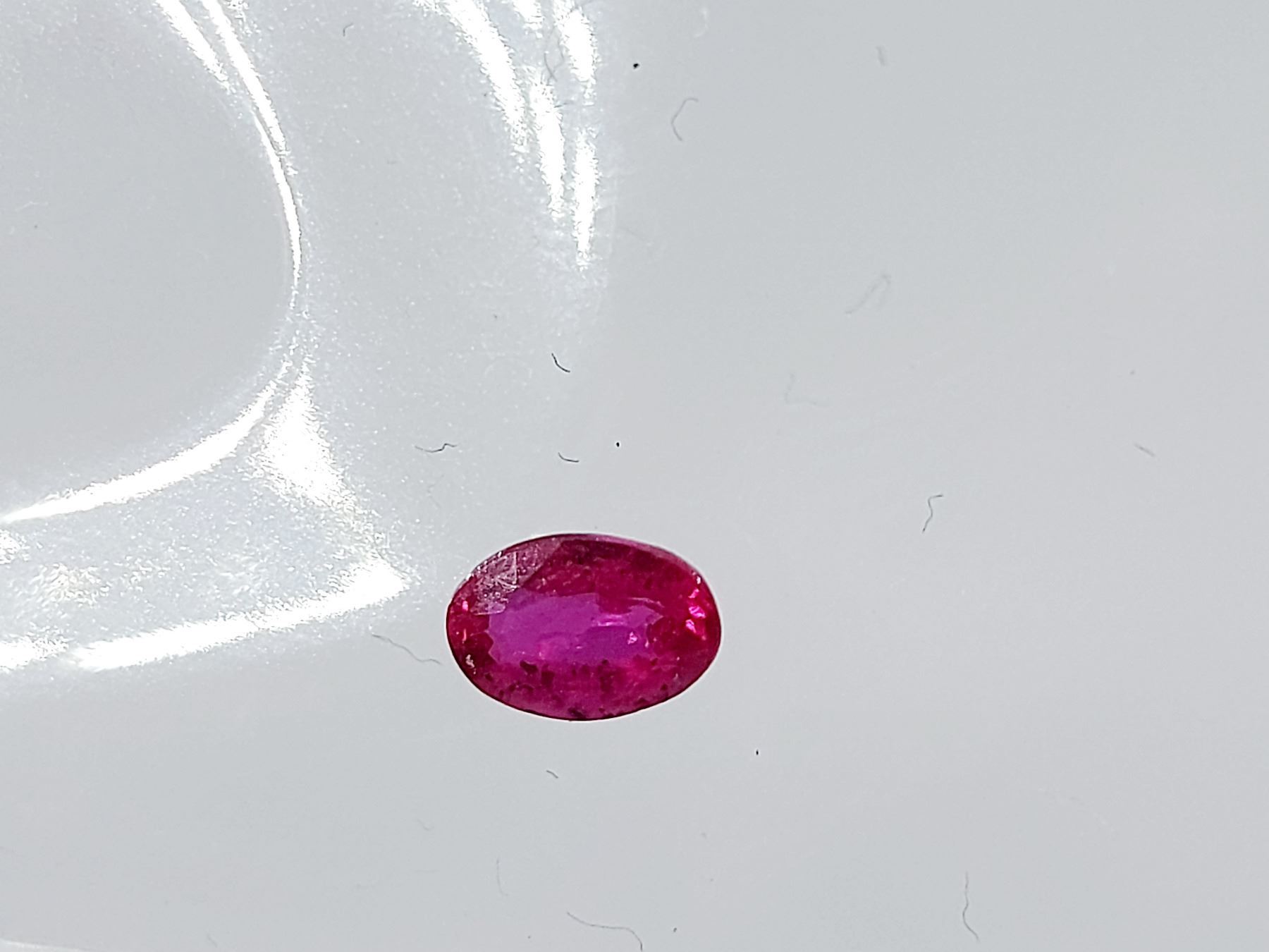 0.635 ct. 6.12 x 4.23 x 2.71 mm Colour: Pinkish Red , Shape: Oval Cut , Clarity: VVS - Eye Clean , Luster: Exceptional , Heated