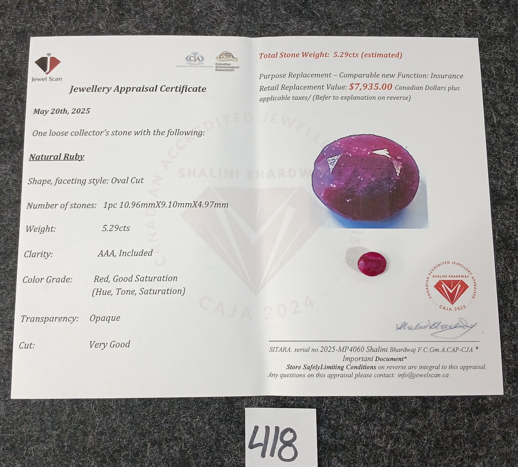 NOTE: INCL JEWELLERY APPRAISAL CERTIFICATE - SEE ALL PICS