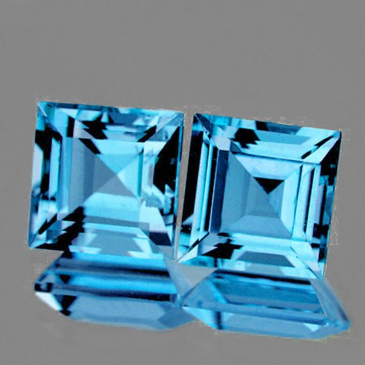 Natural Sky Blue TopazSIZE ( L x W x D ) : 7.00 mm;COLOR : Sky Blue;SHAPE : Square;QUANTITY : 2 pieces ;LUSTER : Excellent!;CLARITY : IF-VVS1 BEST QUALITY;HARDNESS : 8;ORIGIN : Brazil; TREATMENT : Standard;