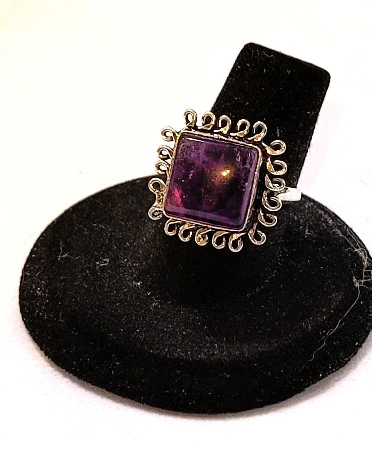 SIZE 6.75, SETTING HAS AN OPEN TWISTED DESIGN, STAMPED 925. JEWELLERY