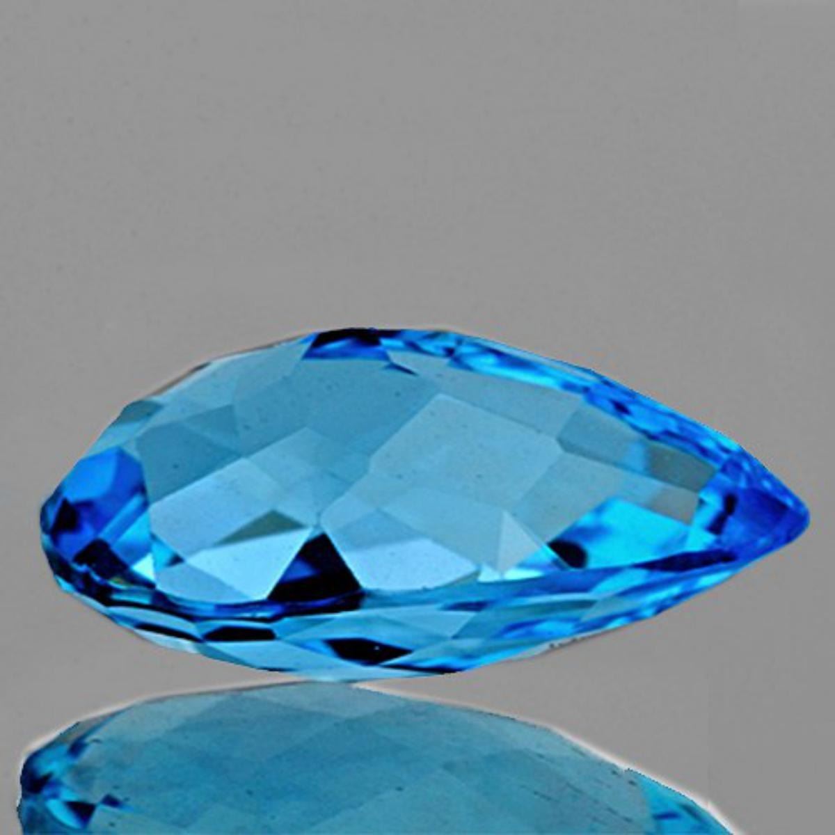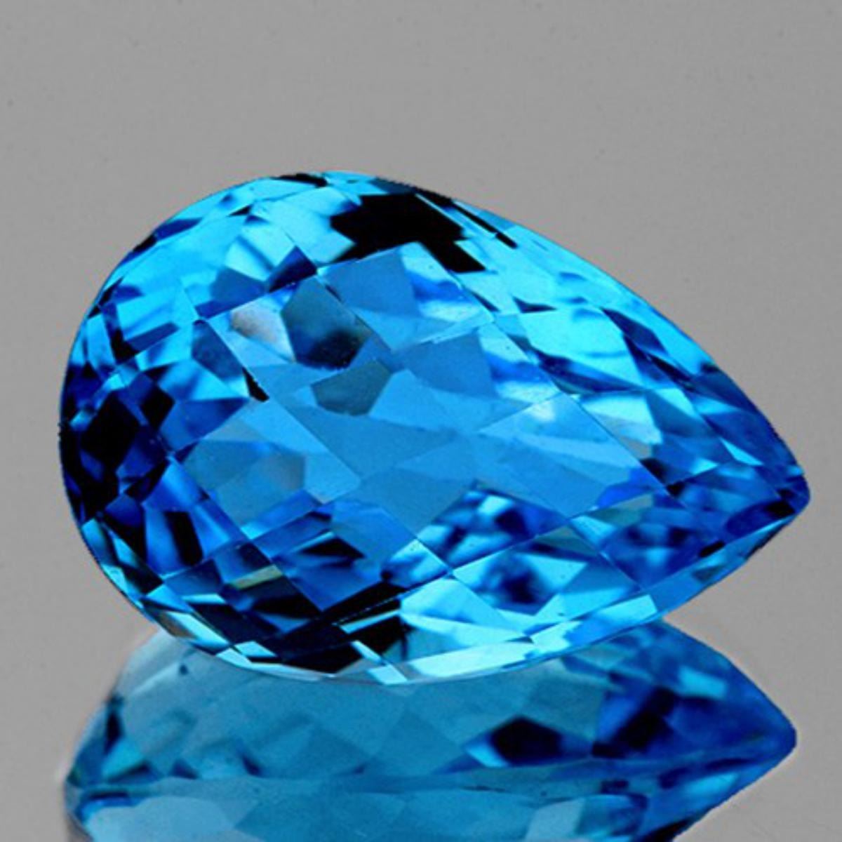 Natural Swiss Blue Topaz (Earthly Mined)SIZE ( L x W x D ) : 21.67 x 13.95 x 11.59 mmCOLOR : Swiss BlueSHAPE : Pear CheckerQUANTITY : 1 pieceLUSTER : Excellent CLARITY : FLAWLESS-VVS (BEST QUALITY)HARDNESS : 8ORIGIN : Brazil TREATMENT : Standard