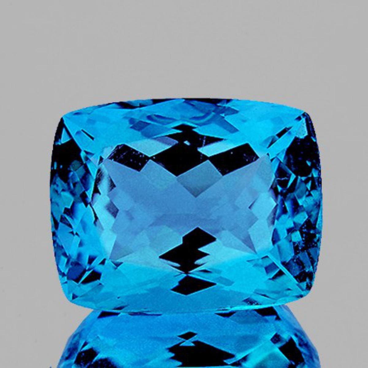WEIGHT : Approximately 37.02ctsSTONE NAME : Natural Swiss Blue TopazSIZE ( L x W x D ) : 20.69 x 15.65 x 11.37 mmCOLOR : Swiss BlueSHAPE : CushionQUANTITY : 1 pieceLUSTER : Excellent CLARITY : FLAWLESS-VVS (BEST QUALITY)HARDNESS : 8ORIGIN : Brazil TREATMENT : Standard