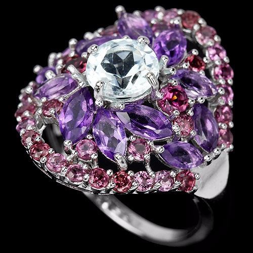 GENUINE TOPAZ AMETHYST RHODOLITE GARNET 925 SILVER RING 14K WHITE GOLD COATING; RING SIZE, LENGTH OF ITEM (Inch.) 8.00 ( CAN BE RESIZED ) STONE SHAPE -ROUND MARQUISE; STONE DIMENSION -6 X 3 MM. , 5 X 2.5 MM. , 7 MM. , 2.7 MM. , 2 MM.; ITEM WEIGHT -6 GRAM; COLOR -MULTI COLOR; CLARITY -IF TO VVS; LUSTER -DAZZLING; TREATMENT -IRRADIATION NATURAL UNHEATED; ORIGIN OF STONE -AFRICA BRAZIL; HARDNESS -7 - 8; FACE OF RING 23 X 21 MM.;