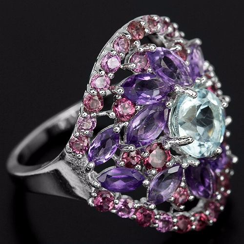 GENUINE TOPAZ AMETHYST  RHODOLITE GARNET 925 SILVER RING 14K WHITE GOLD COATING; RING SIZE, LENGTH OF ITEM (Inch.) 8.00 ( CAN BE RESIZED ) STONE SHAPE -ROUND  MARQUISE; STONE DIMENSION -6 X 3 MM. , 5 X 2.5 MM. , 7 MM. , 2.7 MM. , 2 MM.; ITEM WEIGHT -6 GRAM; COLOR -MULTI COLOR; CLARITY -IF TO VVS; LUSTER -DAZZLING; TREATMENT -IRRADIATION  NATURAL UNHEATED; ORIGIN OF STONE -AFRICA  BRAZIL; HARDNESS -7 - 8; FACE OF RING 23 X 21 MM.;