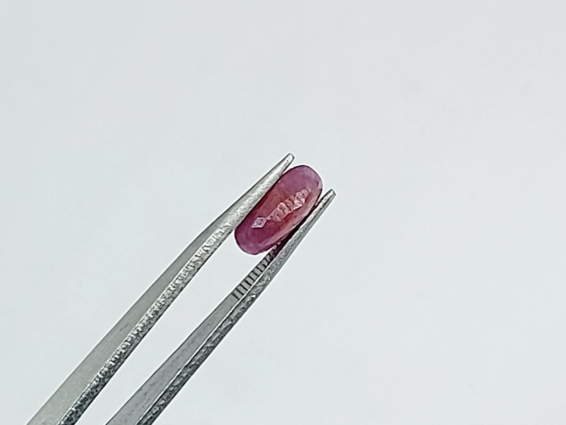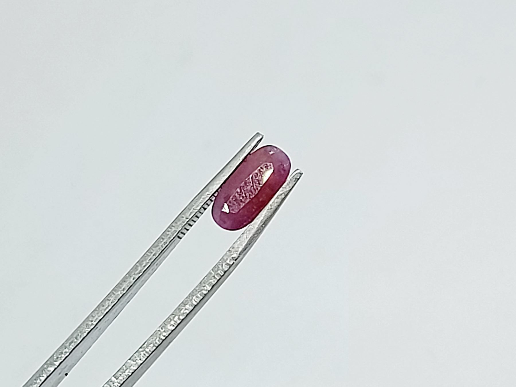 1.76 ct. 9.8 x 4.7 x 3.6 mm Colour: Pigeon Blood Red , Shape: Modified Oval Cut , Clarity: I , Origin: Mozambique Heated G.F.