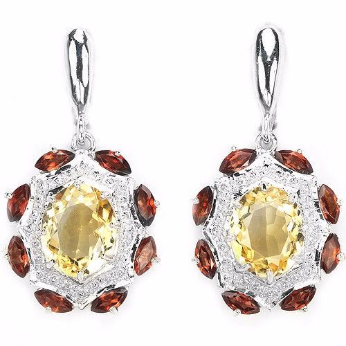ORANGISH YELLOW CITRINE GARNET 925 SILVER EARRING 14K WHITE GOLD COATING; STONE SHAPE-OVAL MARQUISE PORTUGUESE CUT; STONE DIMENSION -11 X 9 MM. , 5 X 2.5 MM.; ITEM WEIGHT -4.3 GRAM;; COLOR ORANGISH YELLOW DRAK ORANGE RED CLARITY IF TO VVS TREATMENT -NATURAL UNHEATED; ORIGIN OF STONE -BRAZIL CAMBODIA; HARDNESS -7 - 7.5; FACE OF EARRING 35 X 18 MM.