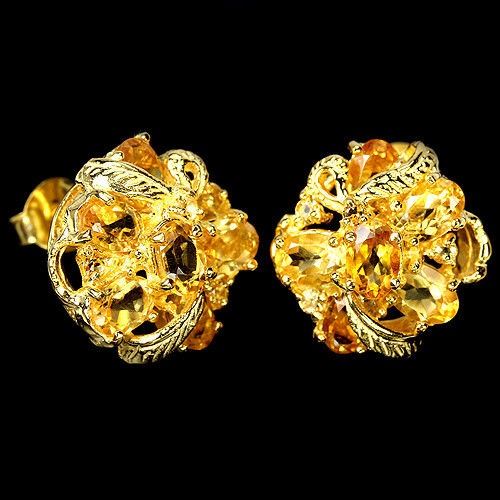 NATURAL ORANGISH YELLOW CITRINE 925 SILVER EARRING 14K YELLOW GOLD COATING;STONE SHAPE OVAL PORTUGUESE CUT STONE DIMENSION 6 X 4 MM. ITEM WEIGHT 7.16 GRAM COLOR AAA ORANGISH YELLOW CLARITY IF - VVS LUSTER DAZZLING TREATMENT UNHEATED ORIGIN OF STONE BRAZIL HARDNESS 7.0 ; FACE OF EARRING 17 X 17 MM.