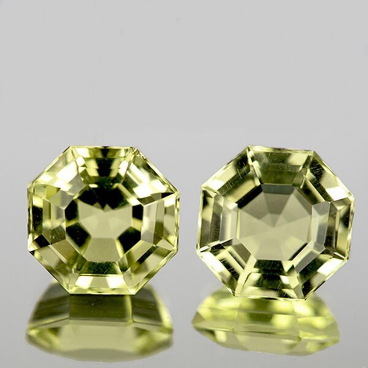 WEIGHT : 19.58 ctsSTONE NAME : Natural Lemon QuartzSIZE ( L x W x D ) : 13.50 mmCOLOR : YellowSHAPE : Octagon (Fancy Cut)QUANTITY : 2 piecesLUSTER : ExcellentCLARITY : FLAWLESS - VVS BEST QUALITYHARDNESS : 7ORIGIN : Brazil TREATMENT : 100 % Natural Unheated
