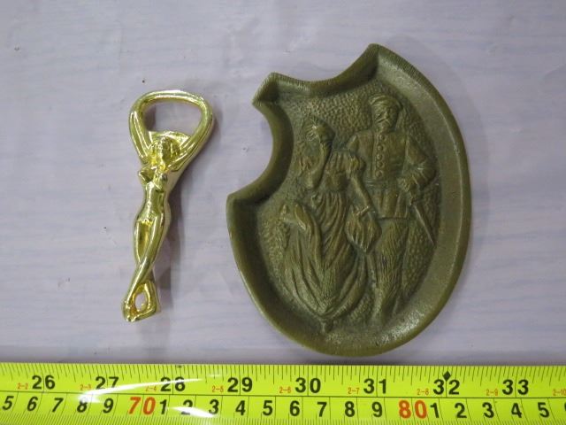 NAUGHTY BRASS ASHTRAY AND 1 FIGURINE