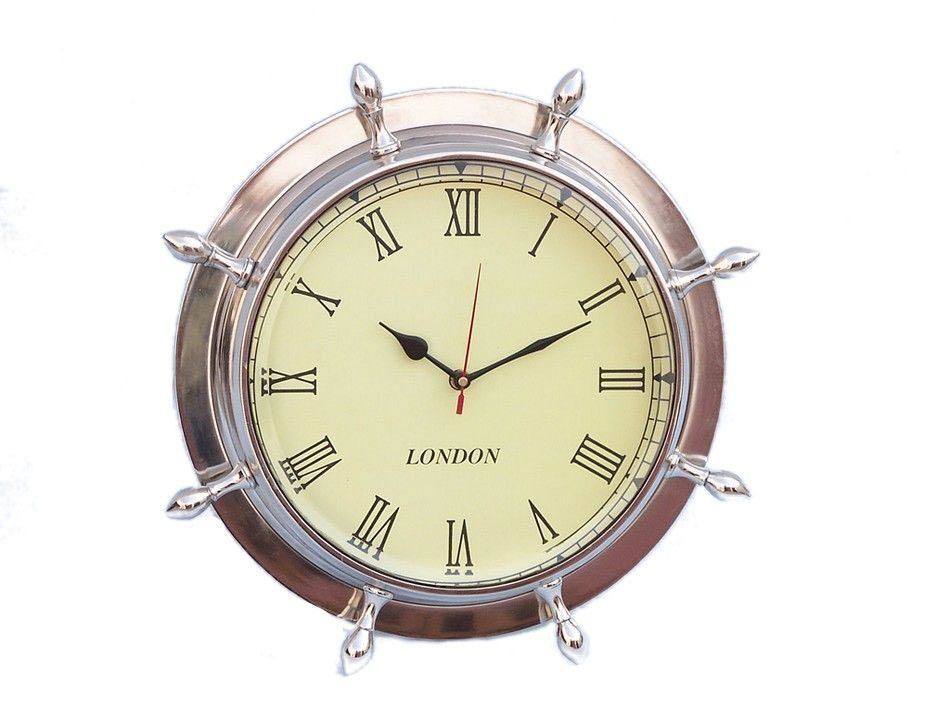 NAUTICAL CHROME 15" SHIP WHEEL CLOCK **|**|** NAUTICAL CHROME 15" SHIP WHEEL CLOCK