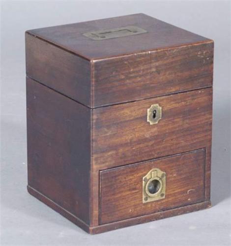 NAUTICAL OR CAMPAIGN APOTHECARY SET, 8"x6 1/2"x 6" deep, filled with many original contents, condition: contents as is- chips to bottles, etc., packing and shipping w/i continental USA $40 + insurance