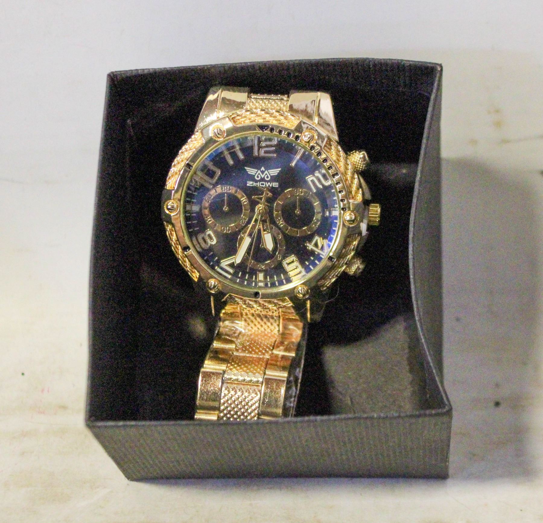 NAUTICAL STYLE BLACK & GOLD COLOURED WATCH