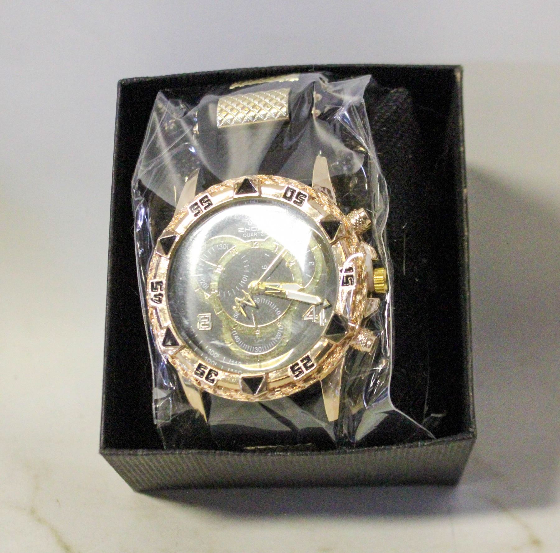 NAUTICAL STYLE BLACK & GOLD COLOURED WATCH