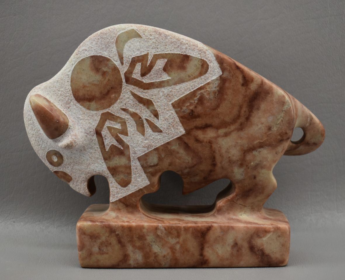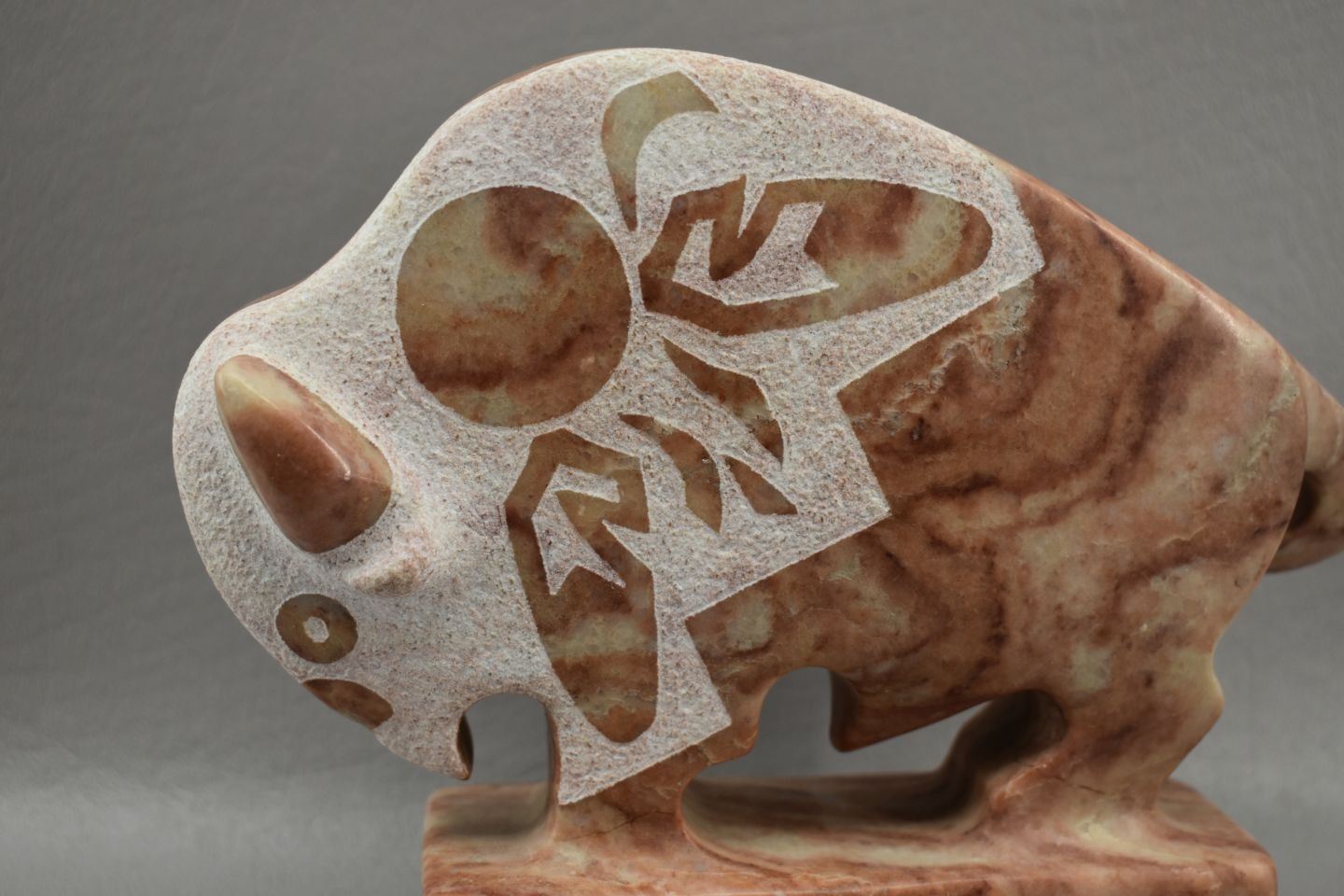 1990's Navajo, carved alabaster buffalo by Larry Johnson 5.75" x 7" x 1.75"