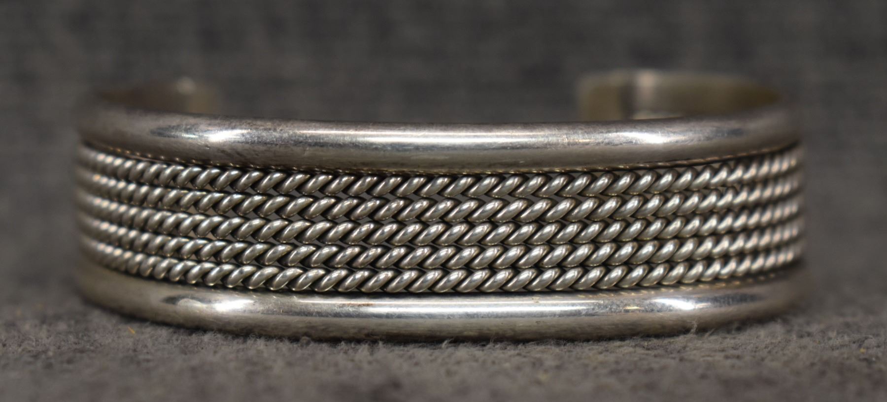 1990's Navajo sterling silver bracelet stamped TAHE. 34g 5.25" with 1.25" opening