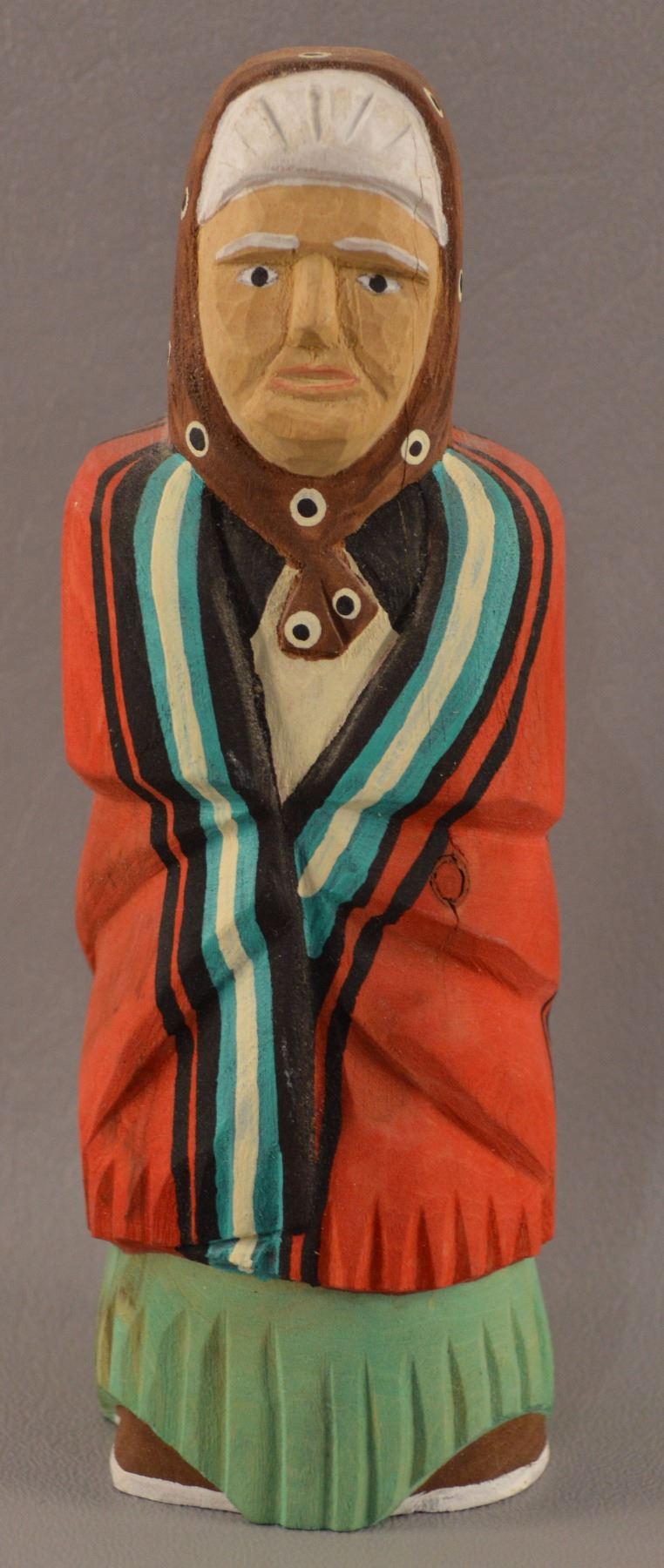 1980's. Hand carved and painted Navajo woman. Signed Dennis Pioche.