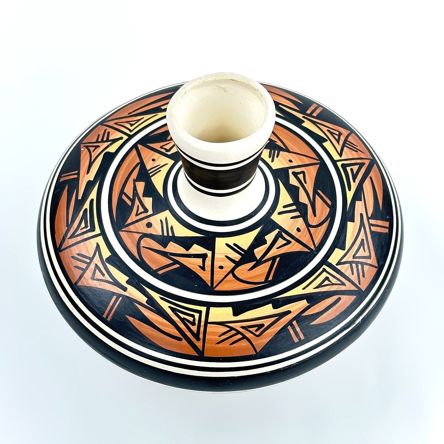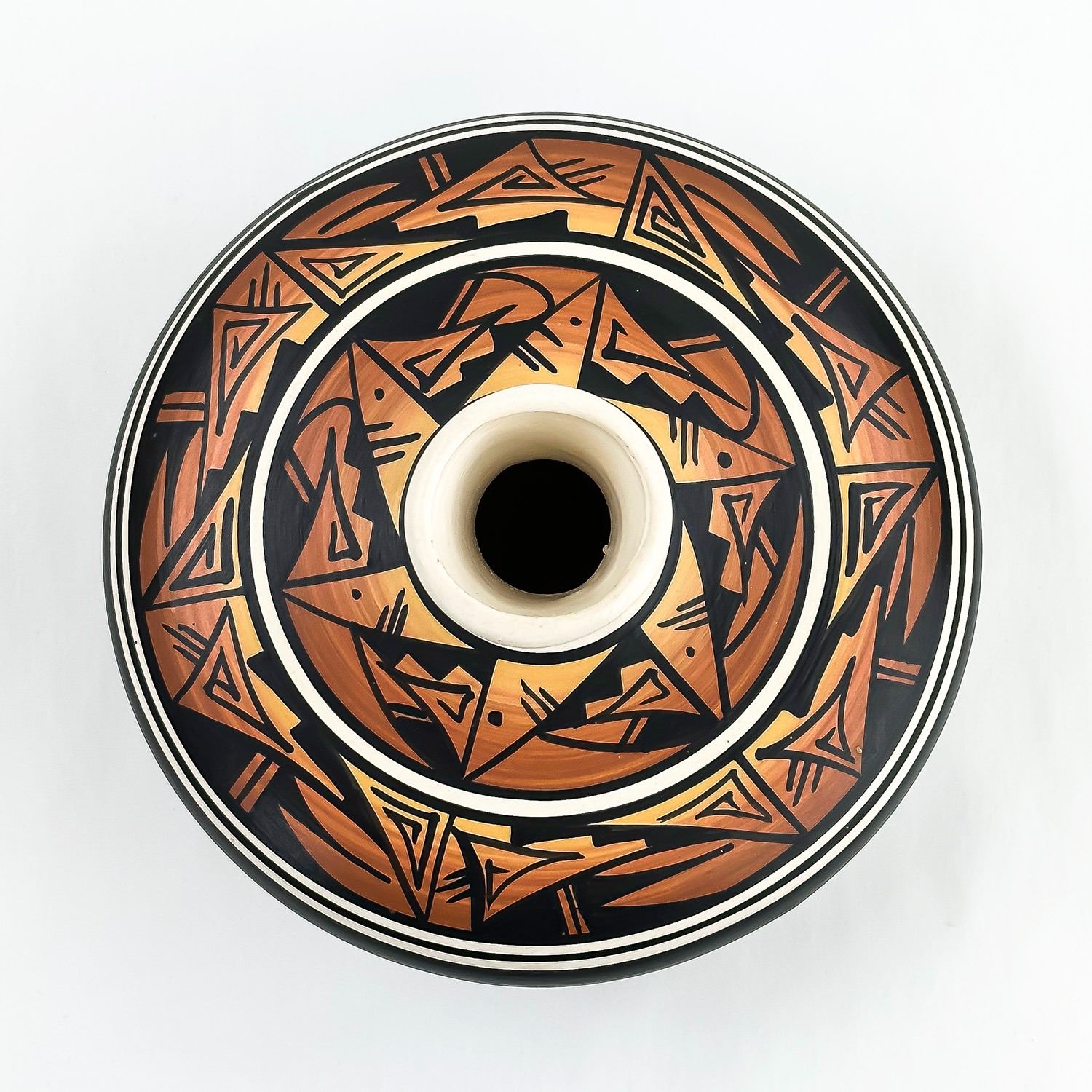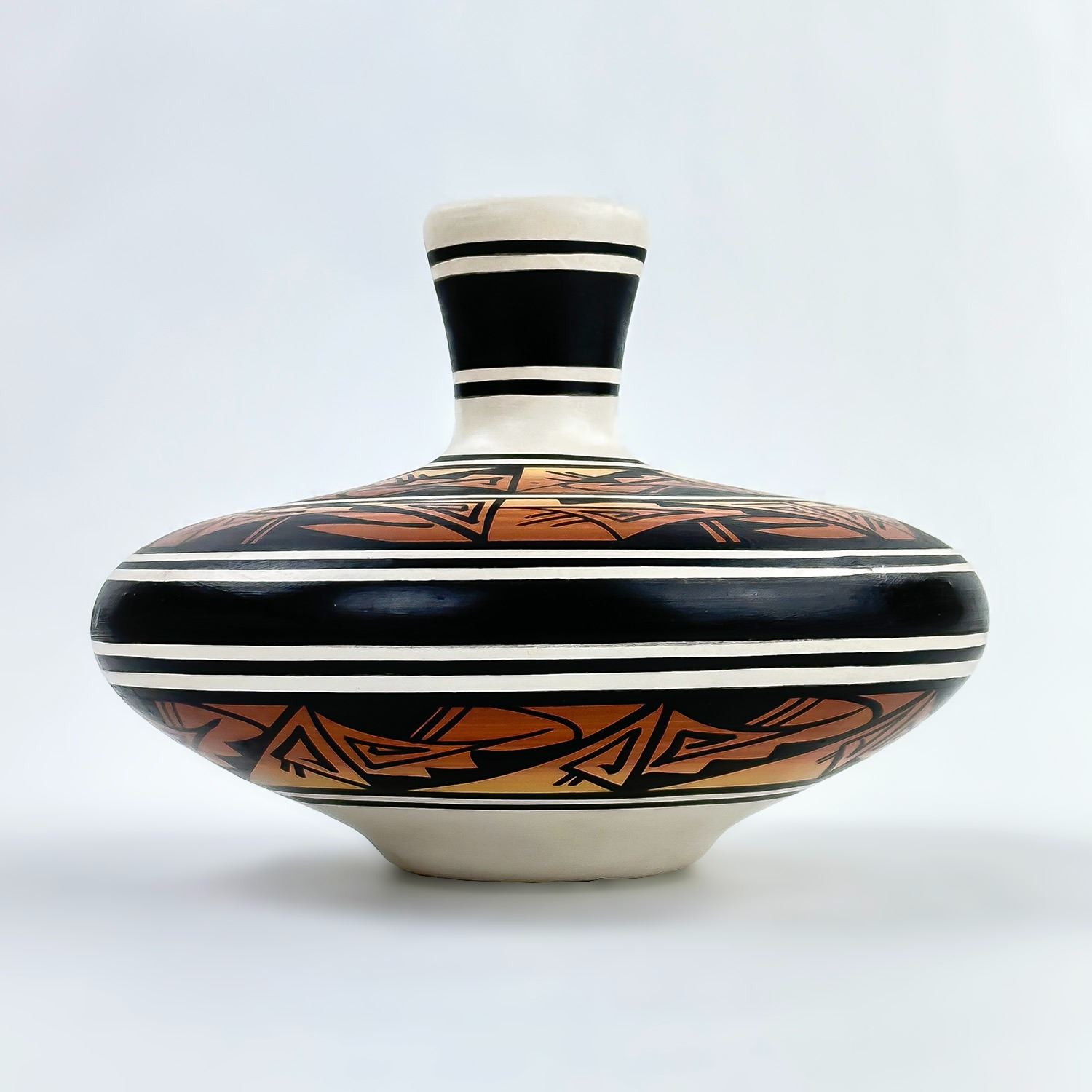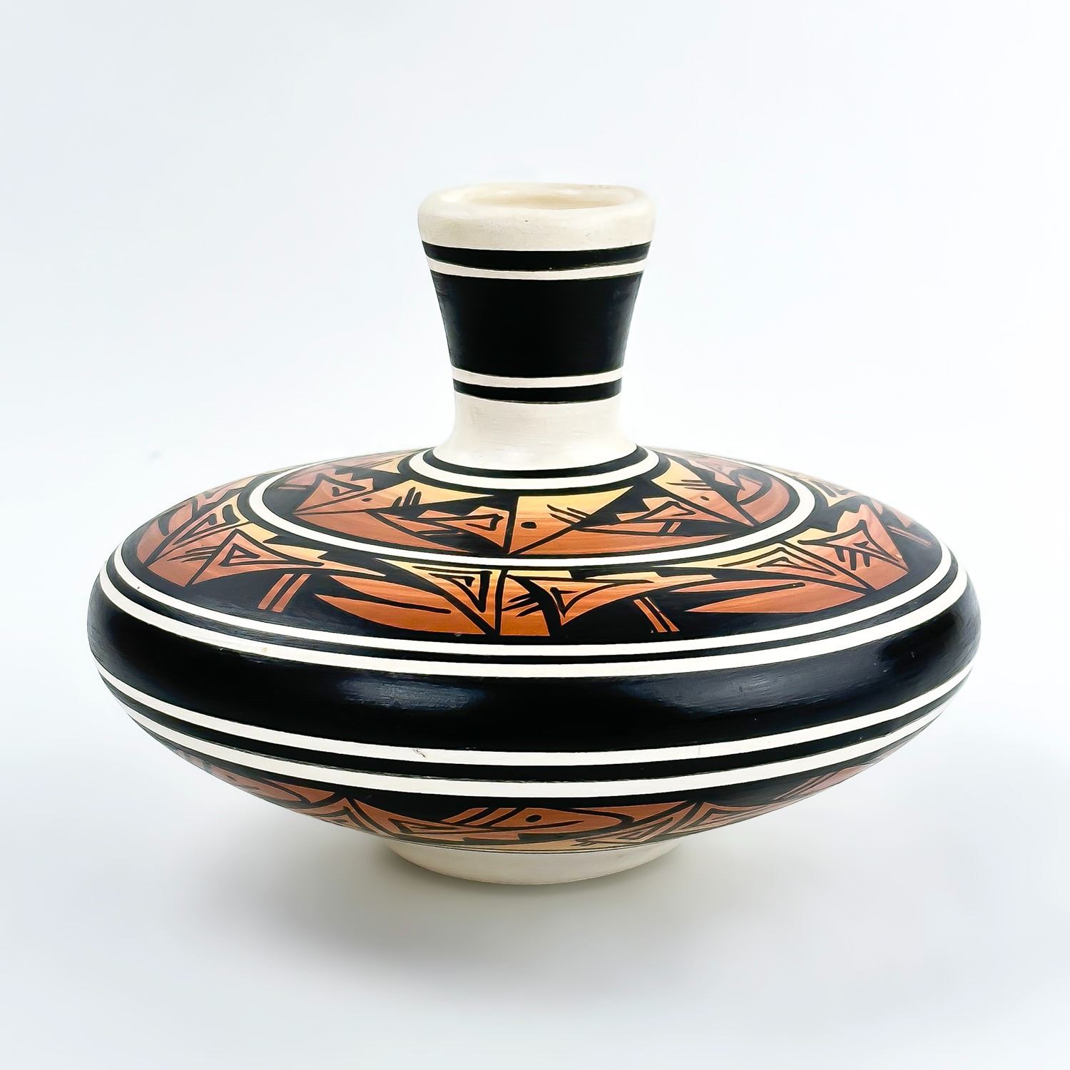#8002 - NATIVE AMERICAN NAVAJO POTERY VASE BY SUE T DINE 1988. MEASURES: 5.5” (14 CM) TALL BY 7.75” (19.5 CM) WIDEST DIAMETER