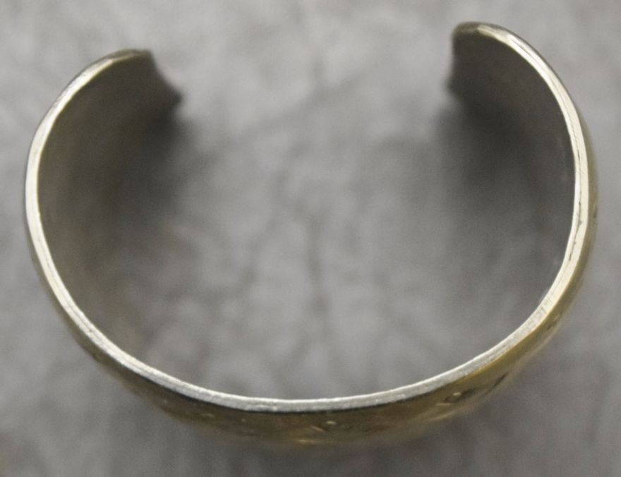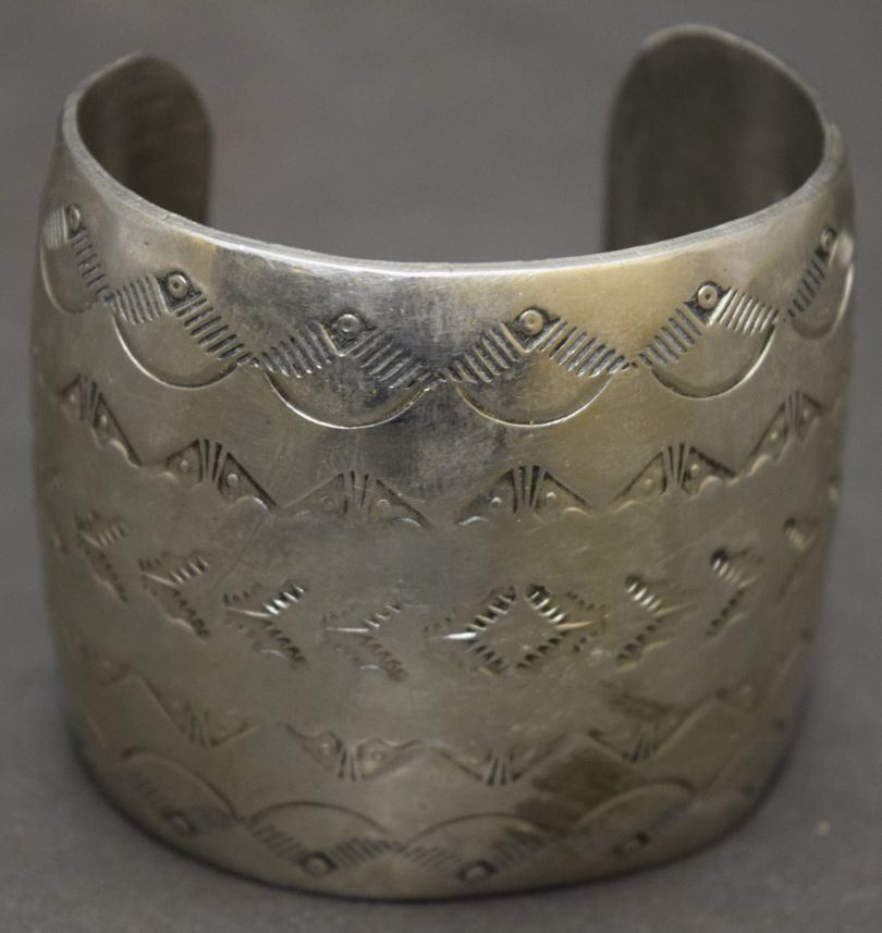 1980's Nickel silver cuff bracelet with stamped design.2.25'' x 4.75'' x 1.25'' total weight 87 grams