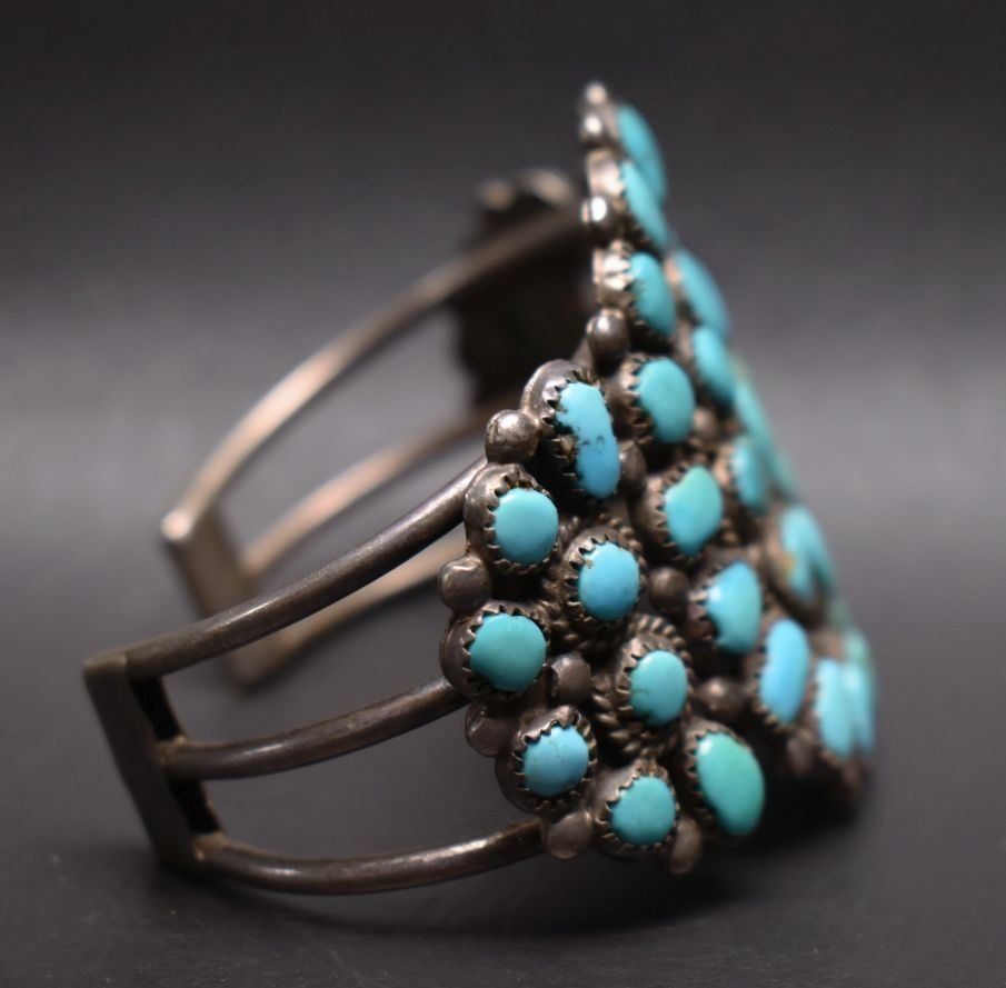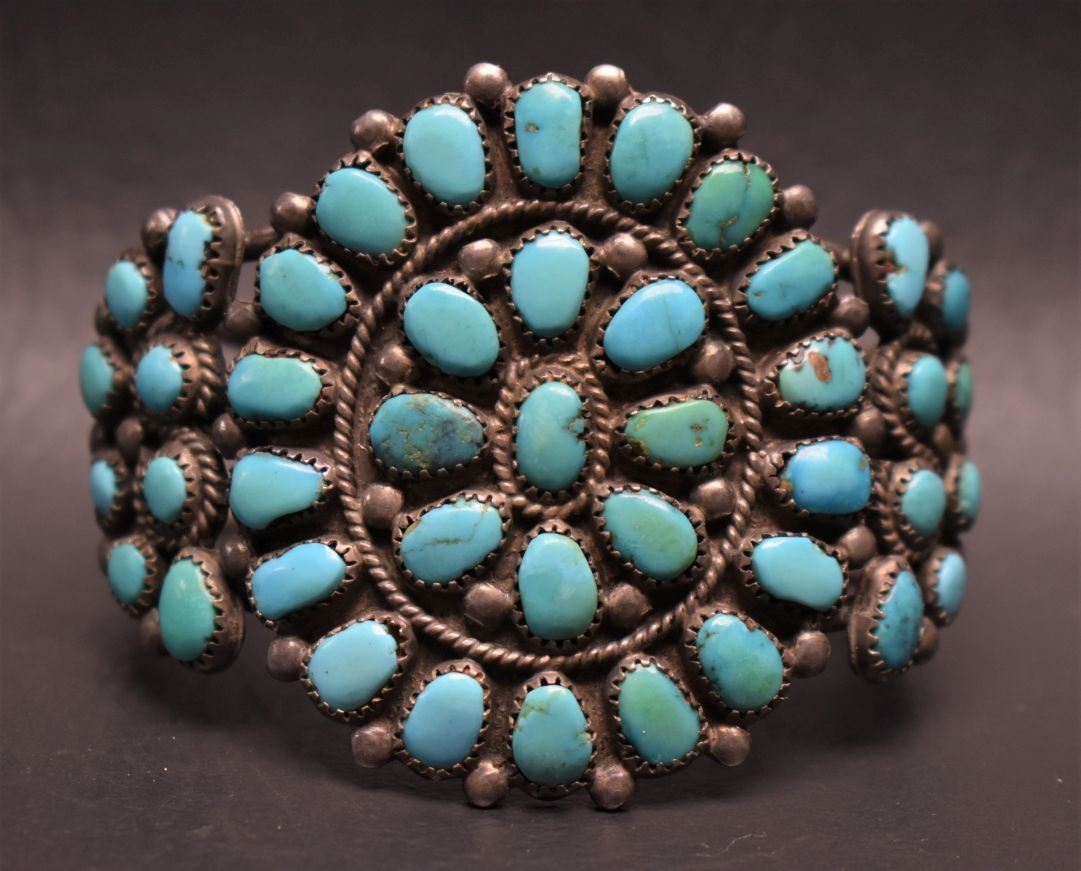 1960's Navajo Indian. Sterling silver and turquoise bracelet 2'' x 5.5'' x 1.25'' total weight 60 grams