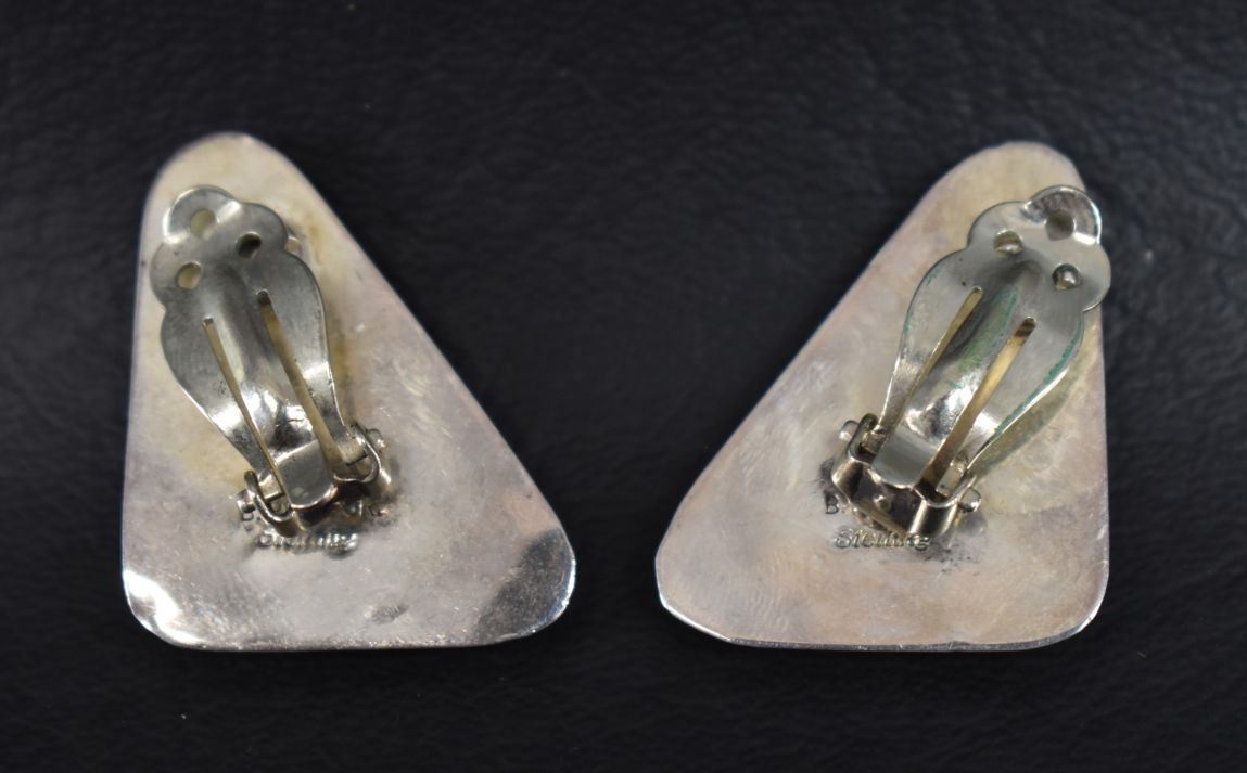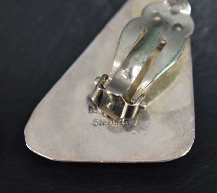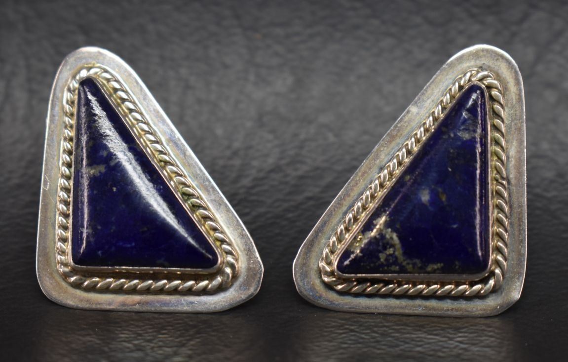 1990's Navajo Indian. Sterling silver and lapis earrings, 1.5'' x 1''.total weight 14 grams